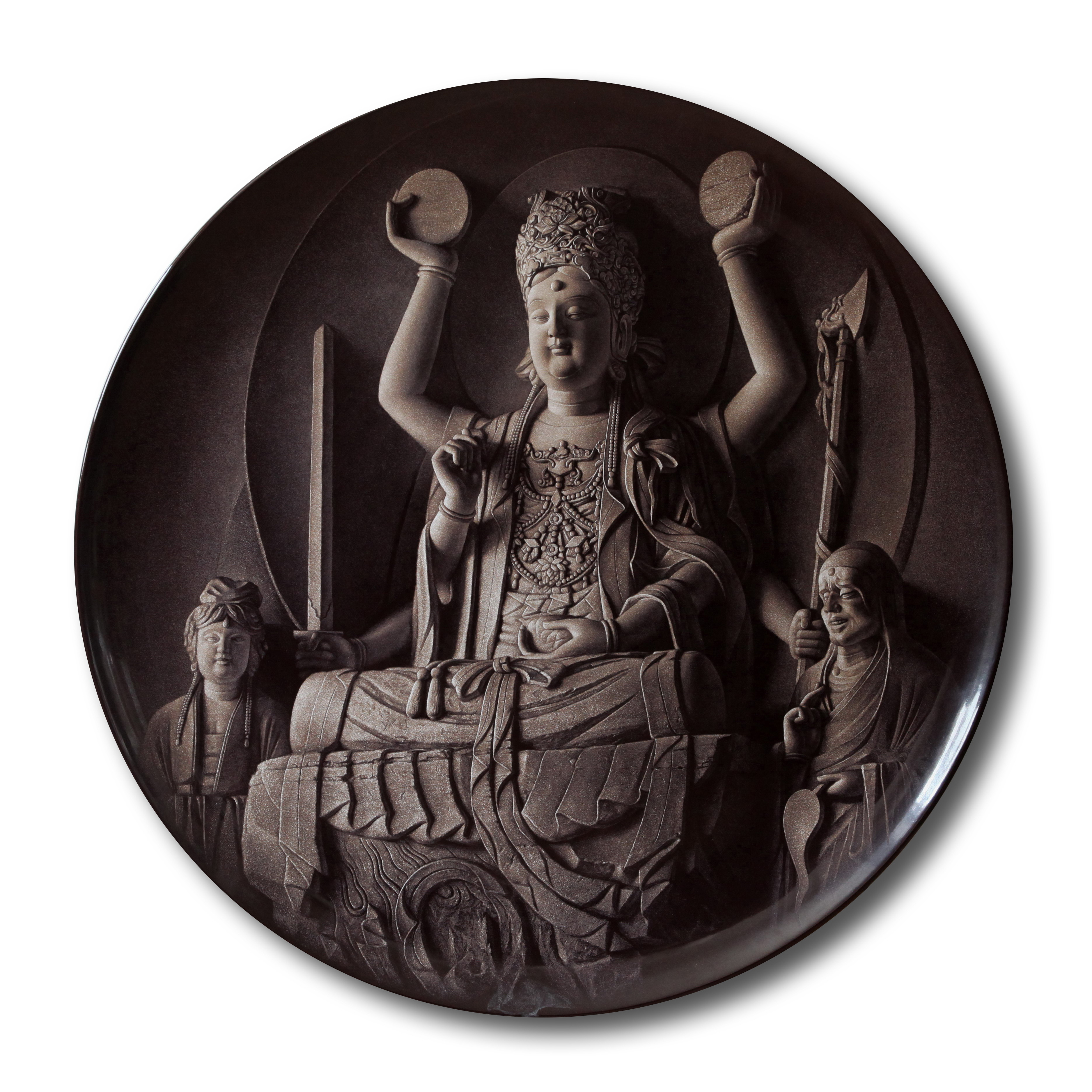 丁邦海-国家级陶瓷艺术大师《日月观音》刻瓷盘