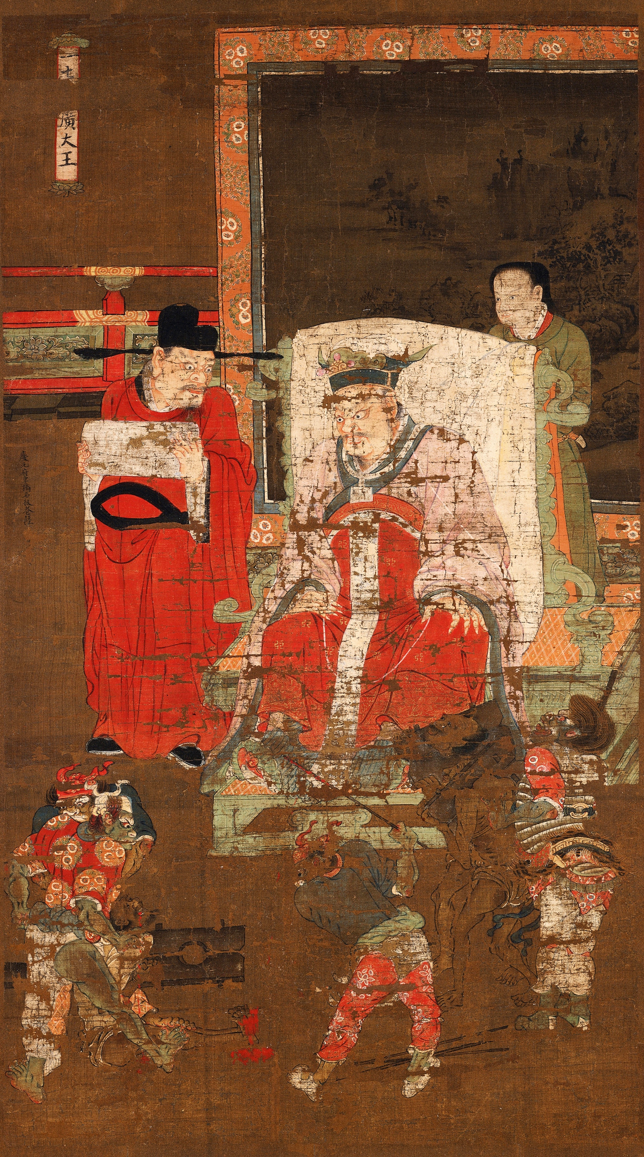 元代_陆仲渊《十王图》之秦广王_绢本85.9x50.8_【大图编号-A371】_2200x3952_meet.fo