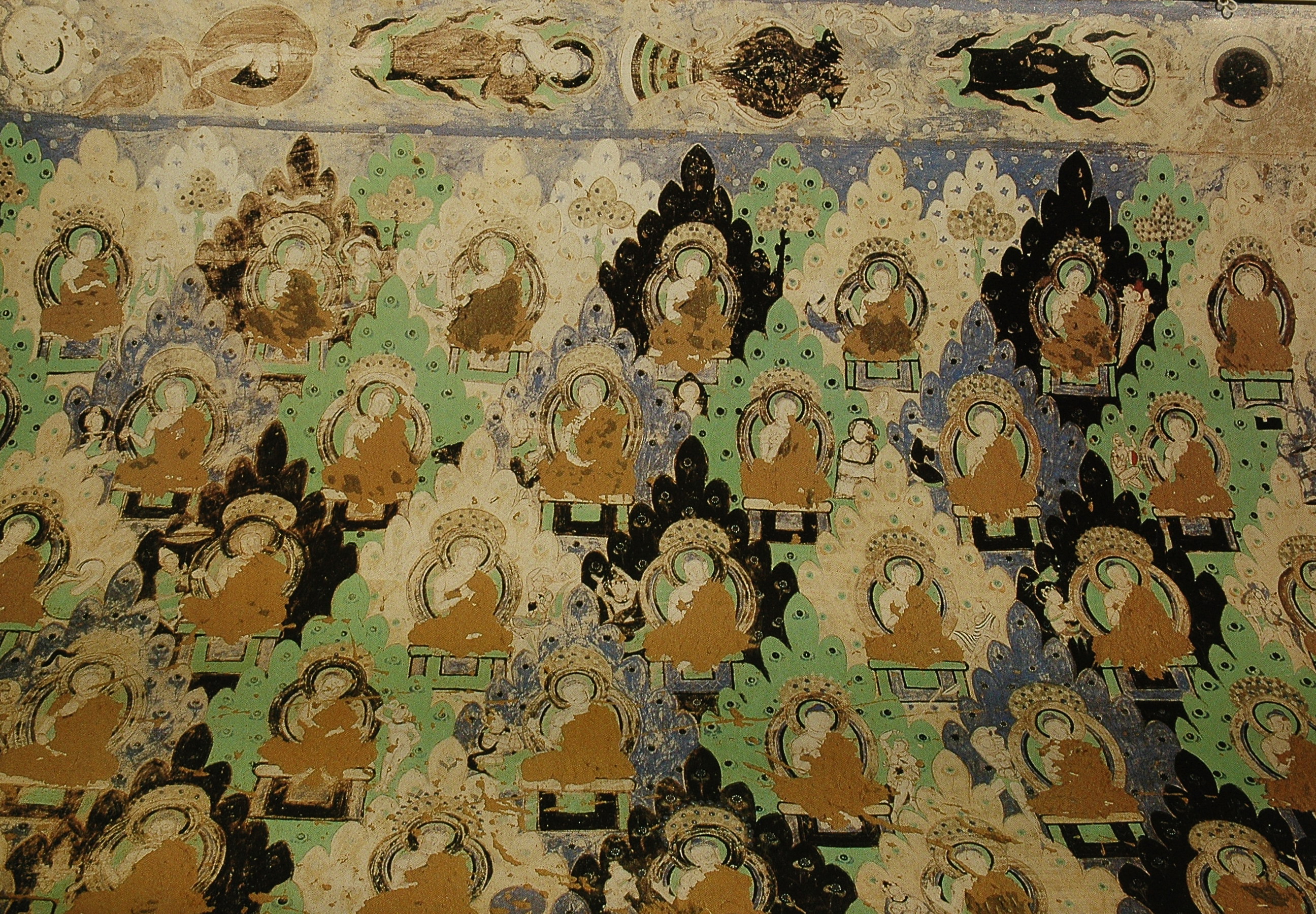 各洞窟中最常见的除了本生故事就是《涅槃经图》或称《涅槃经变图》。主要表现的是《大般泥洹经》的内容。德国考察队在上个世纪初在克孜尔石窟曾发现了一些梵文的《大般泥洹经》的写本和残片,一般认为是小乘“说一切有部”的经籍。