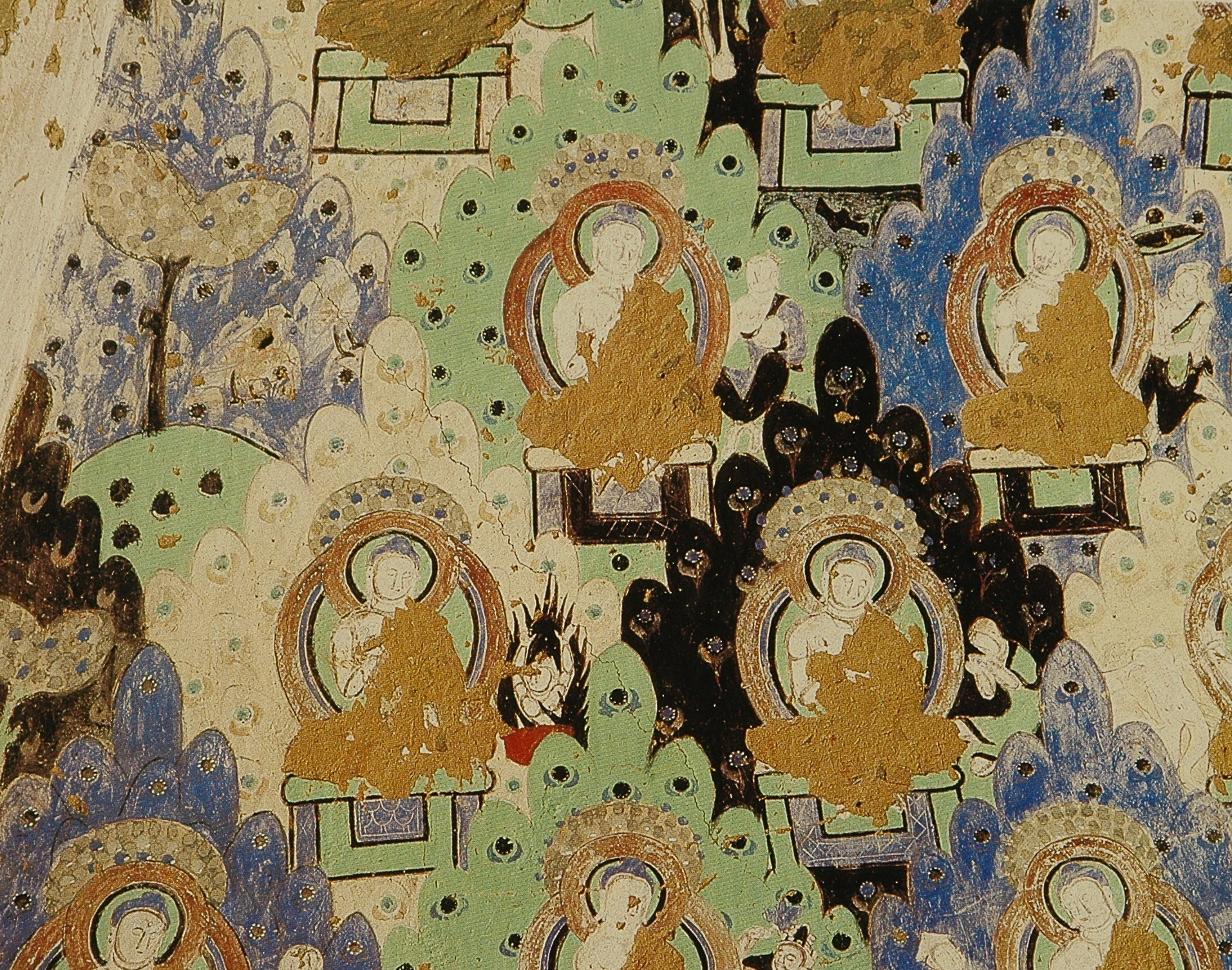 各洞窟中最常见的除了本生故事就是《涅槃经图》或称《涅槃经变图》。主要表现的是《大般泥洹经》的内容。德国考察队在上个世纪初在克孜尔石窟曾发现了一些梵文的《大般泥洹经》的写本和残片,一般认为是小乘“说一切有部”的经籍。