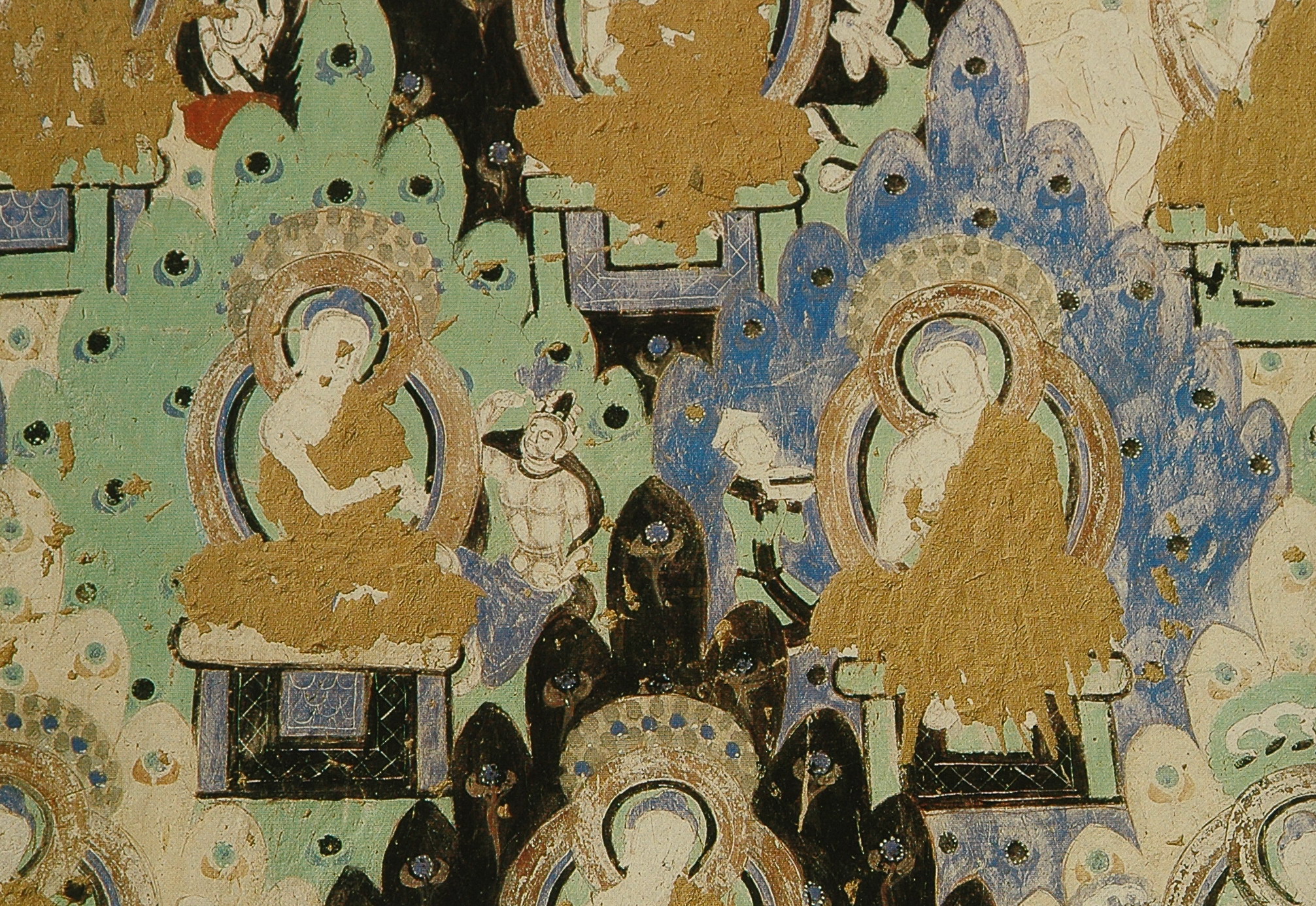 各洞窟中最常见的除了本生故事就是《涅槃经图》或称《涅槃经变图》。主要表现的是《大般泥洹经》的内容。德国考察队在上个世纪初在克孜尔石窟曾发现了一些梵文的《大般泥洹经》的写本和残片,一般认为是小乘“说一切有部”的经籍。