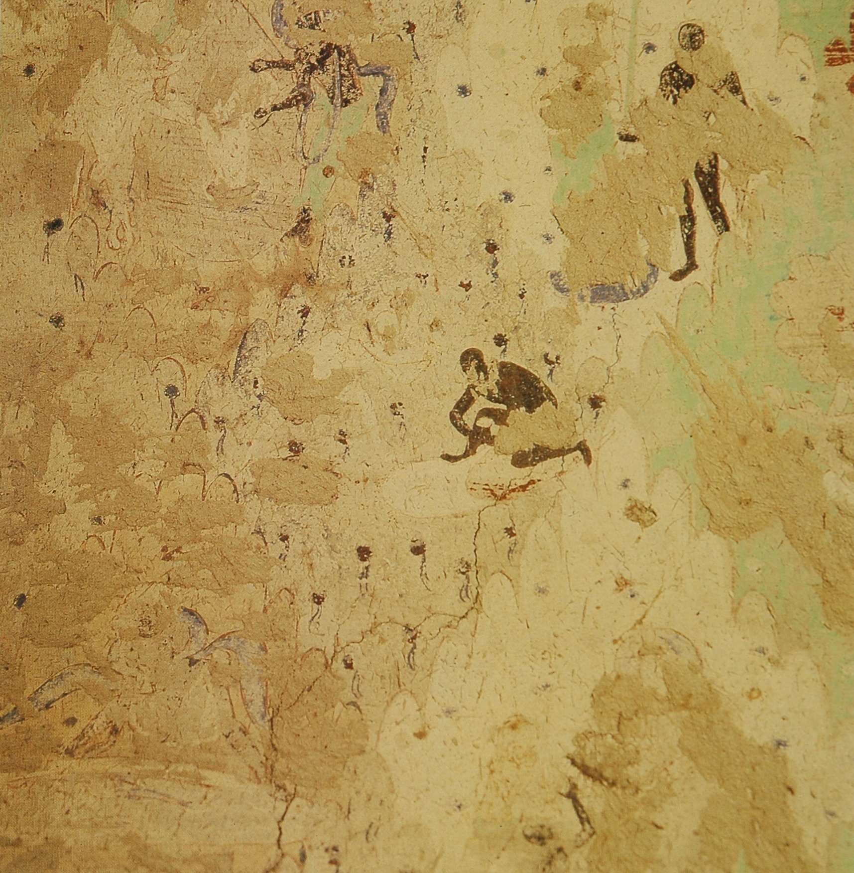 各洞窟中最常见的除了本生故事就是《涅槃经图》或称《涅槃经变图》。主要表现的是《大般泥洹经》的内容。德国考察队在上个世纪初在克孜尔石窟曾发现了一些梵文的《大般泥洹经》的写本和残片,一般认为是小乘“说一切有部”的经籍。