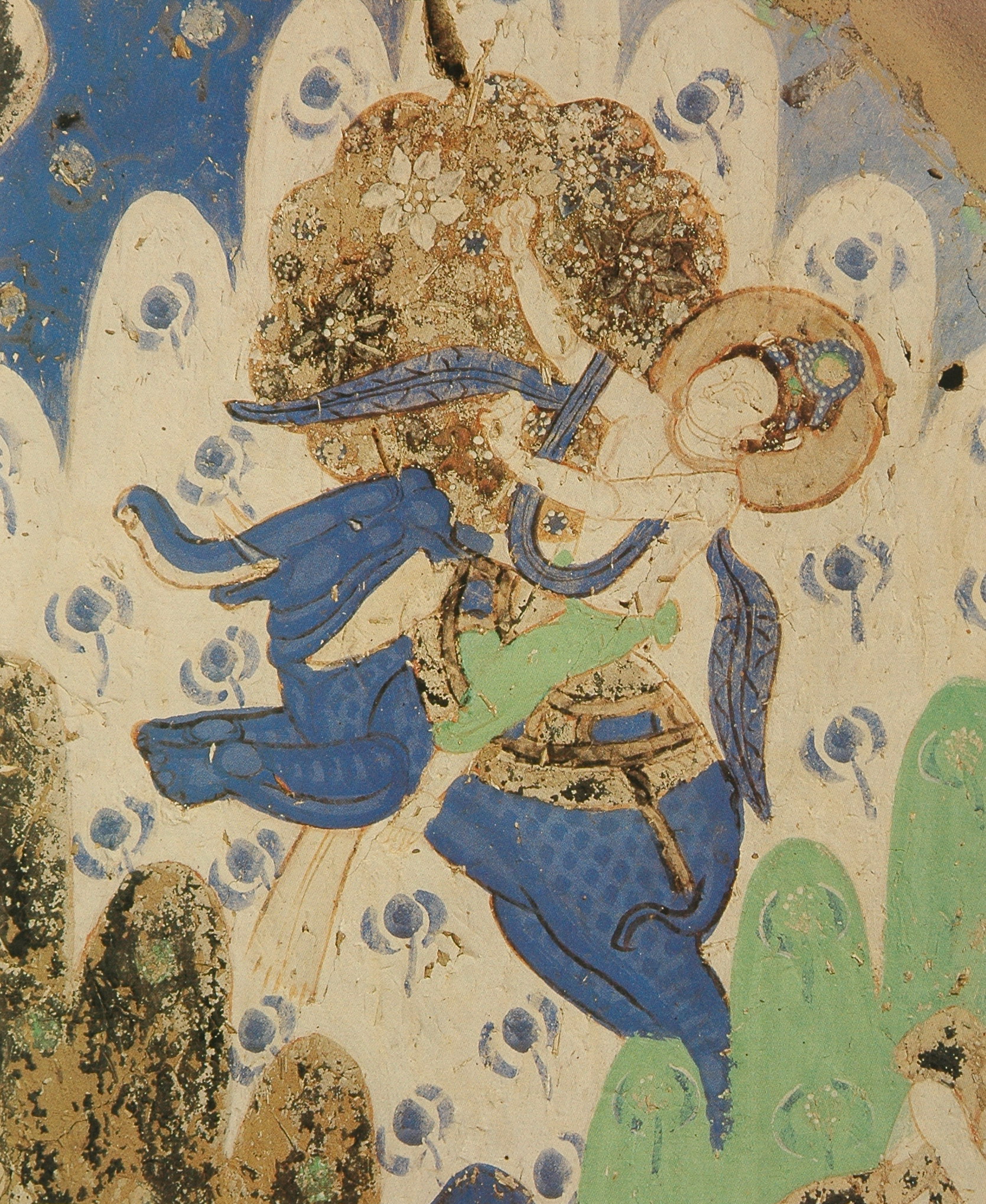 克孜尔石窟又称克孜尔千佛洞。“克孜尔”是维吾尔语“红色”的意思,大概因为雀尔达格山色赭红,故在此山上所凿石窟叫“克孜尔石窟”。库木吐拉是维吾尔语“沙漠中的烽火台”的意思。它位于西域佛教艺术东传翻越葱岭、丝绸之路北线沿塔克拉玛干沙漠——塔里木盆地绿洲驿站上的第一站:河西诸石窟。其西有阿富汗巴米扬石窟群,其东有敦煌石窟。作为古龟兹佛教石窟寺的代表,克孜尔石窟中最常见的壁画图像是佛传、本生和因缘故事,反映了古代龟兹国流行的从中亚古犍陀罗地区经过罽宾传来的小乘佛教信仰。