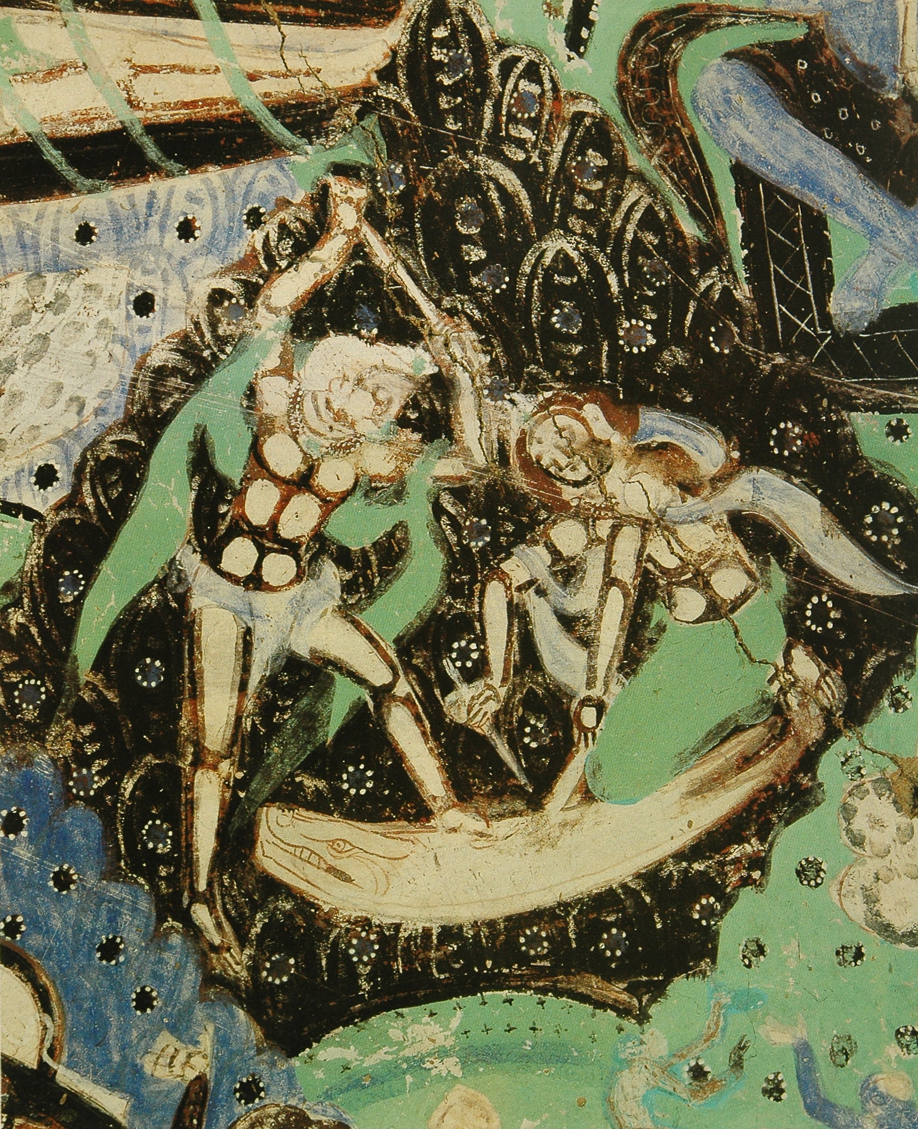 各洞窟中最常见的除了本生故事就是《涅槃经图》或称《涅槃经变图》。主要表现的是《大般泥洹经》的内容。德国考察队在上个世纪初在克孜尔石窟曾发现了一些梵文的《大般泥洹经》的写本和残片,一般认为是小乘“说一切有部”的经籍。
