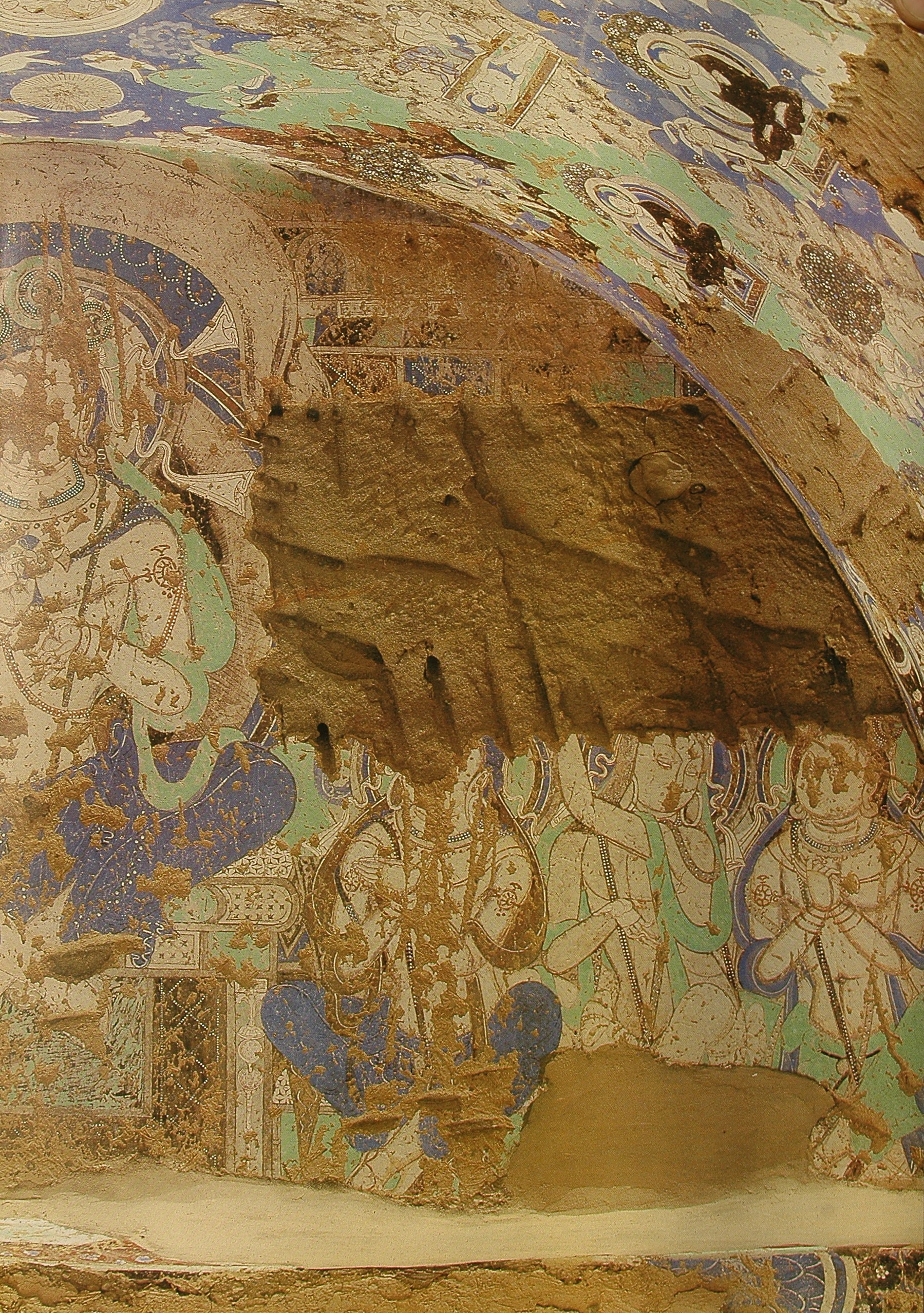 各洞窟中最常见的除了本生故事就是《涅槃经图》或称《涅槃经变图》。主要表现的是《大般泥洹经》的内容。德国考察队在上个世纪初在克孜尔石窟曾发现了一些梵文的《大般泥洹经》的写本和残片,一般认为是小乘“说一切有部”的经籍。