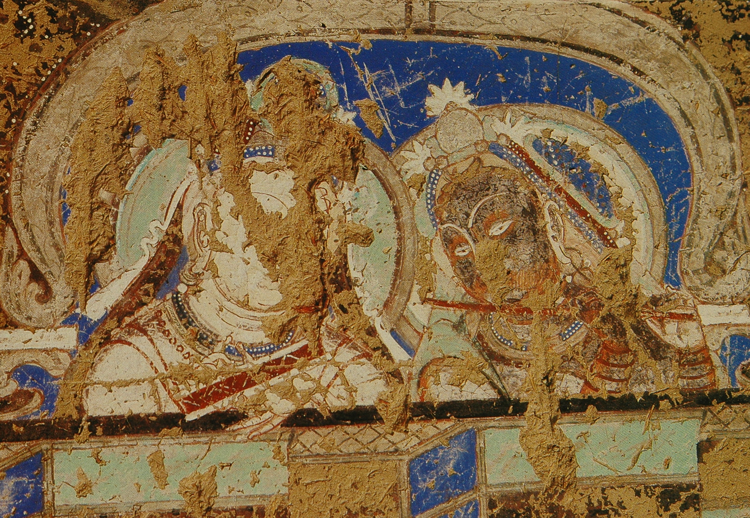 各洞窟中最常见的除了本生故事就是《涅槃经图》或称《涅槃经变图》。主要表现的是《大般泥洹经》的内容。德国考察队在上个世纪初在克孜尔石窟曾发现了一些梵文的《大般泥洹经》的写本和残片,一般认为是小乘“说一切有部”的经籍。