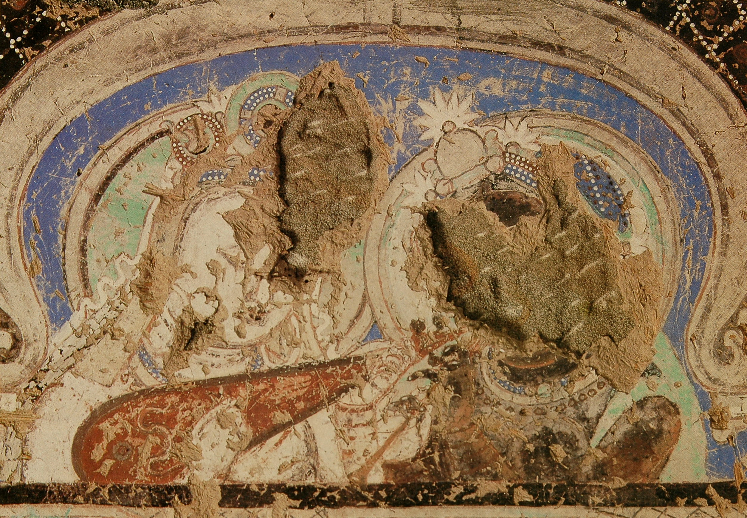克孜尔石窟又称克孜尔千佛洞。“克孜尔”是维吾尔语“红色”的意思,大概因为雀尔达格山色赭红,故在此山上所凿石窟叫“克孜尔石窟”。库木吐拉是维吾尔语“沙漠中的烽火台”的意思。它位于西域佛教艺术东传翻越葱岭、丝绸之路北线沿塔克拉玛干沙漠——塔里木盆地绿洲驿站上的第一站:河西诸石窟。其西有阿富汗巴米扬石窟群,其东有敦煌石窟。作为古龟兹佛教石窟寺的代表,克孜尔石窟中最常见的壁画图像是佛传、本生和因缘故事,反映了古代龟兹国流行的从中亚古犍陀罗地区经过罽宾传来的小乘佛教信仰。