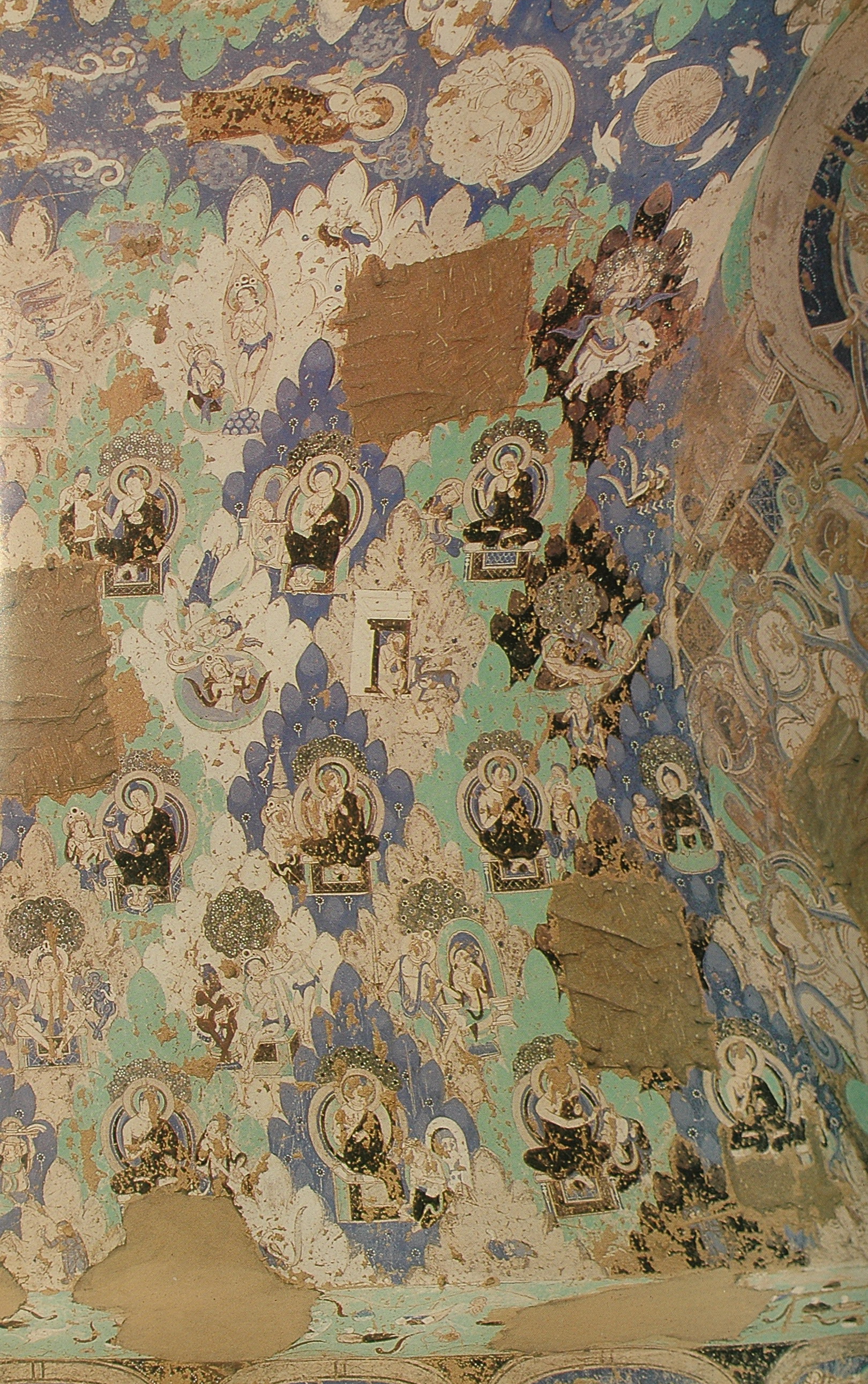 各洞窟中最常见的除了本生故事就是《涅槃经图》或称《涅槃经变图》。主要表现的是《大般泥洹经》的内容。德国考察队在上个世纪初在克孜尔石窟曾发现了一些梵文的《大般泥洹经》的写本和残片,一般认为是小乘“说一切有部”的经籍。