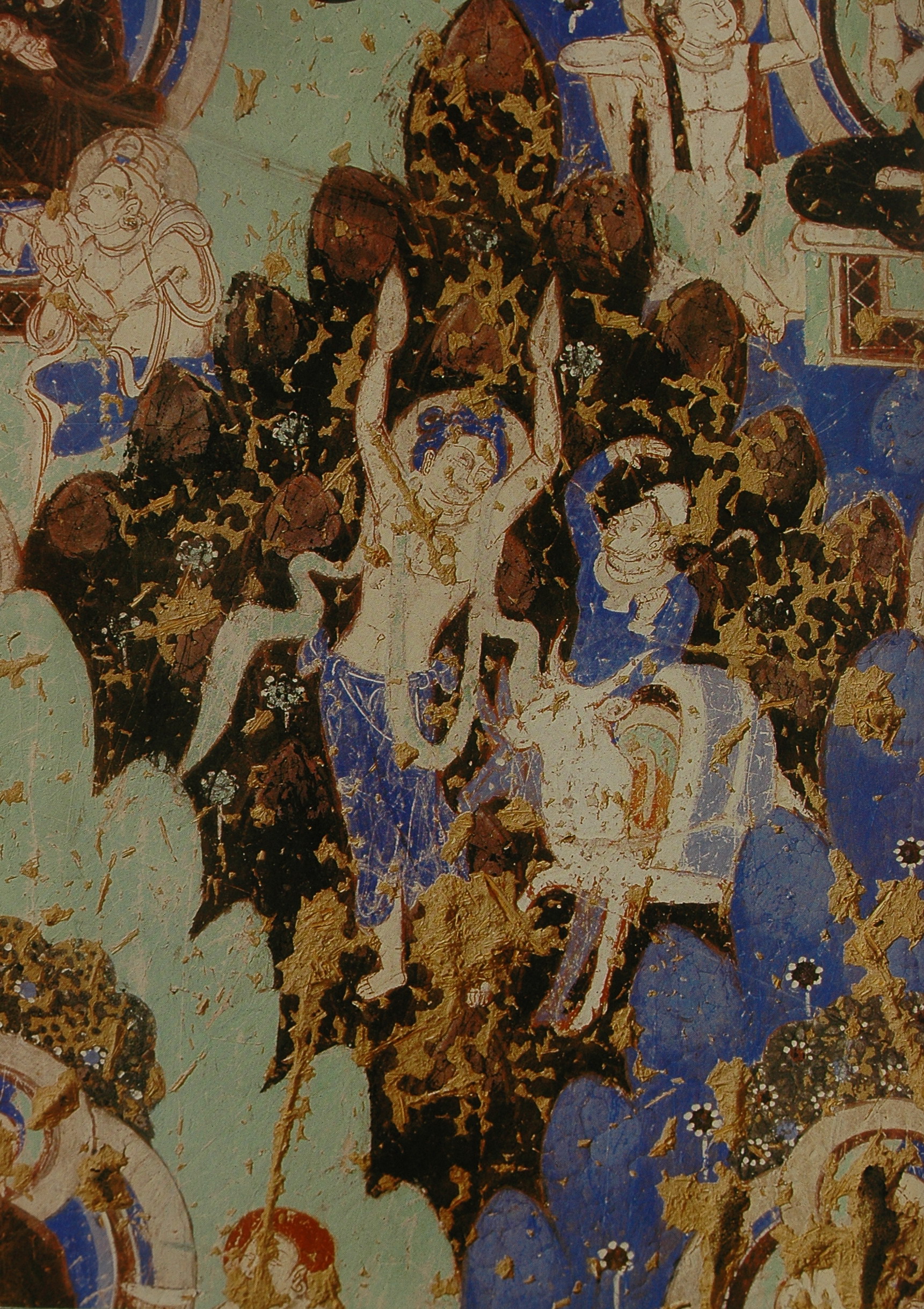 各洞窟中最常见的除了本生故事就是《涅槃经图》或称《涅槃经变图》。主要表现的是《大般泥洹经》的内容。德国考察队在上个世纪初在克孜尔石窟曾发现了一些梵文的《大般泥洹经》的写本和残片,一般认为是小乘“说一切有部”的经籍。