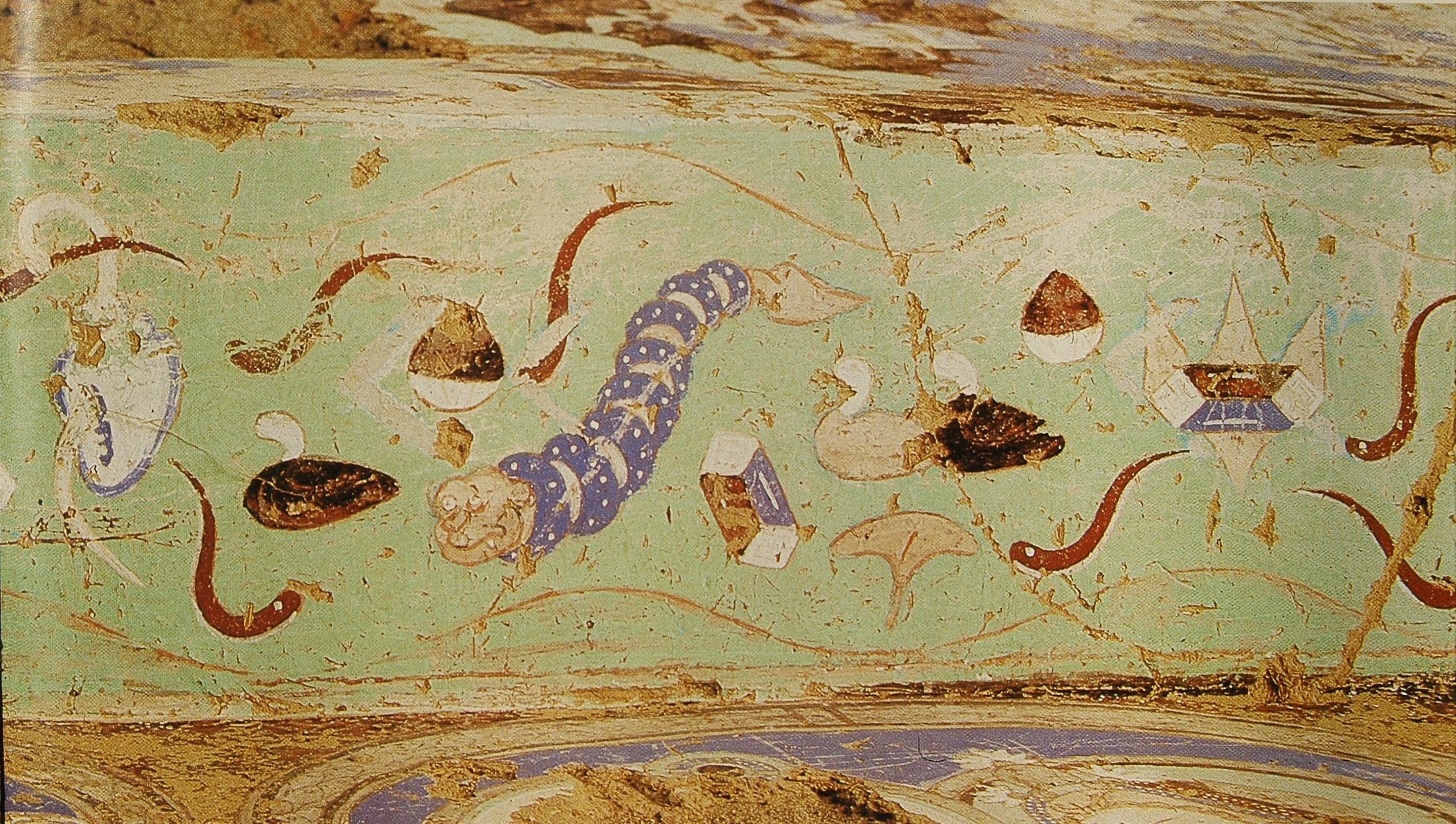 克孜尔石窟又称克孜尔千佛洞。“克孜尔”是维吾尔语“红色”的意思,大概因为雀尔达格山色赭红,故在此山上所凿石窟叫“克孜尔石窟”。库木吐拉是维吾尔语“沙漠中的烽火台”的意思。它位于西域佛教艺术东传翻越葱岭、丝绸之路北线沿塔克拉玛干沙漠——塔里木盆地绿洲驿站上的第一站:河西诸石窟。其西有阿富汗巴米扬石窟群,其东有敦煌石窟。作为古龟兹佛教石窟寺的代表,克孜尔石窟中最常见的壁画图像是佛传、本生和因缘故事,反映了古代龟兹国流行的从中亚古犍陀罗地区经过罽宾传来的小乘佛教信仰。