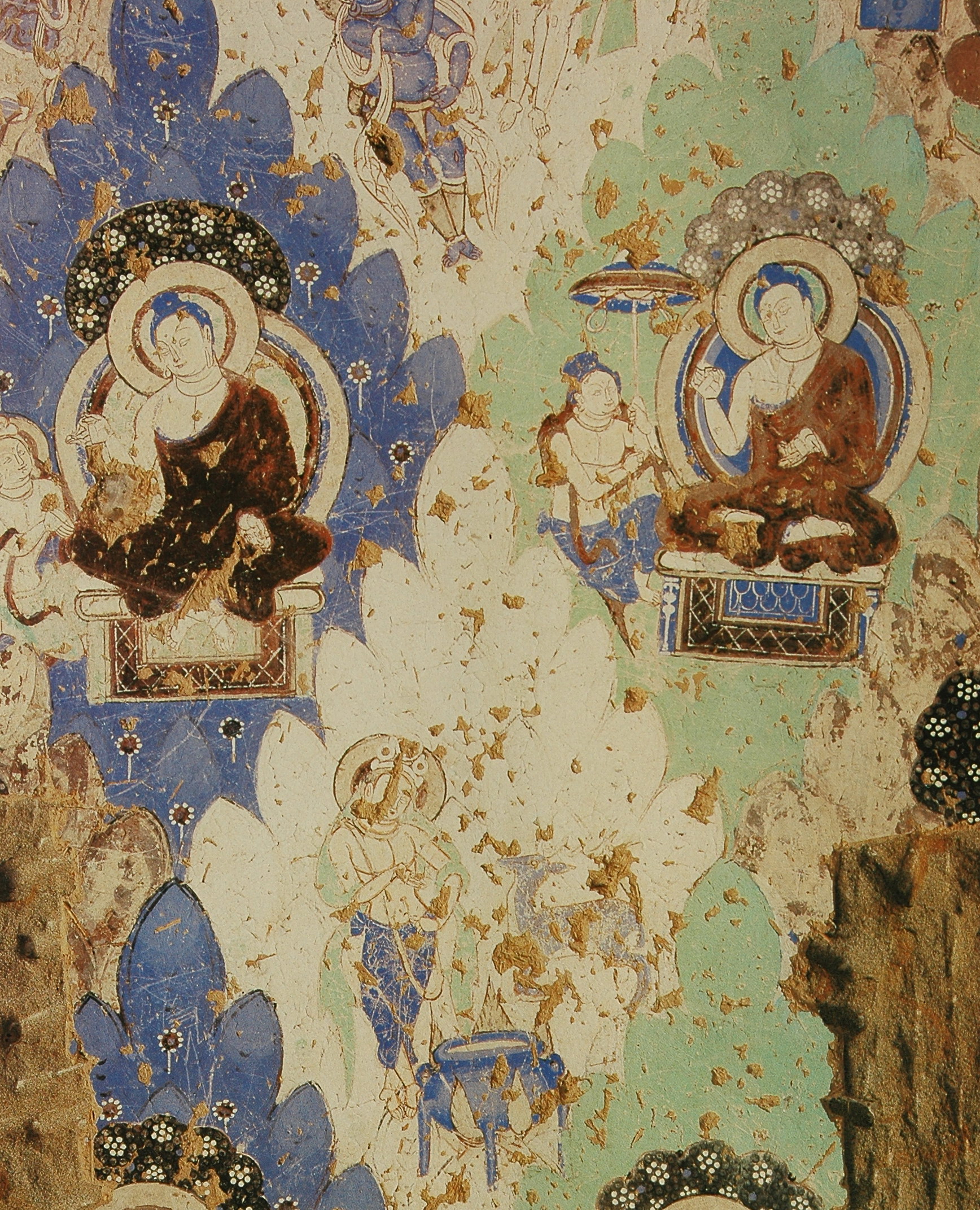 各洞窟中最常见的除了本生故事就是《涅槃经图》或称《涅槃经变图》。主要表现的是《大般泥洹经》的内容。德国考察队在上个世纪初在克孜尔石窟曾发现了一些梵文的《大般泥洹经》的写本和残片,一般认为是小乘“说一切有部”的经籍。