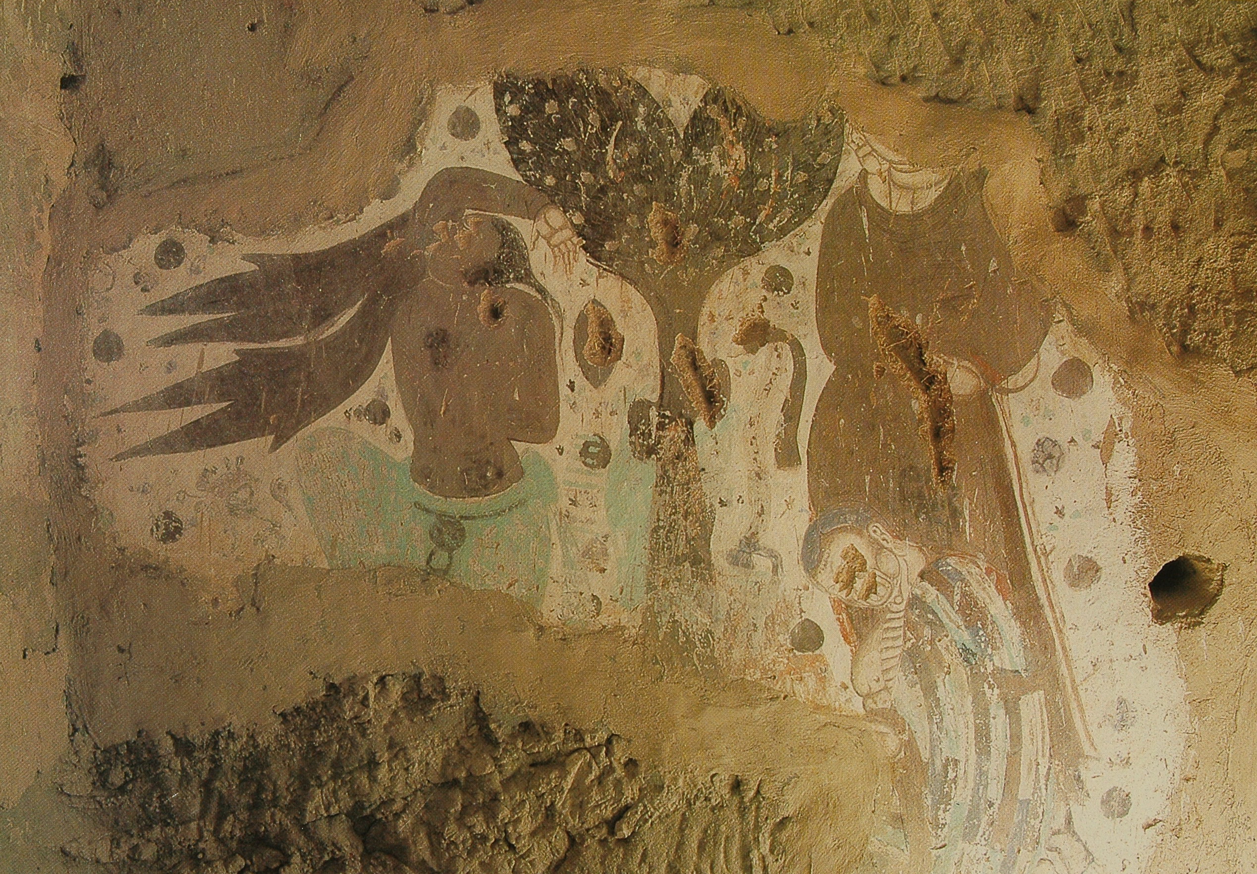 各洞窟中最常见的除了本生故事就是《涅槃经图》或称《涅槃经变图》。主要表现的是《大般泥洹经》的内容。德国考察队在上个世纪初在克孜尔石窟曾发现了一些梵文的《大般泥洹经》的写本和残片,一般认为是小乘“说一切有部”的经籍。