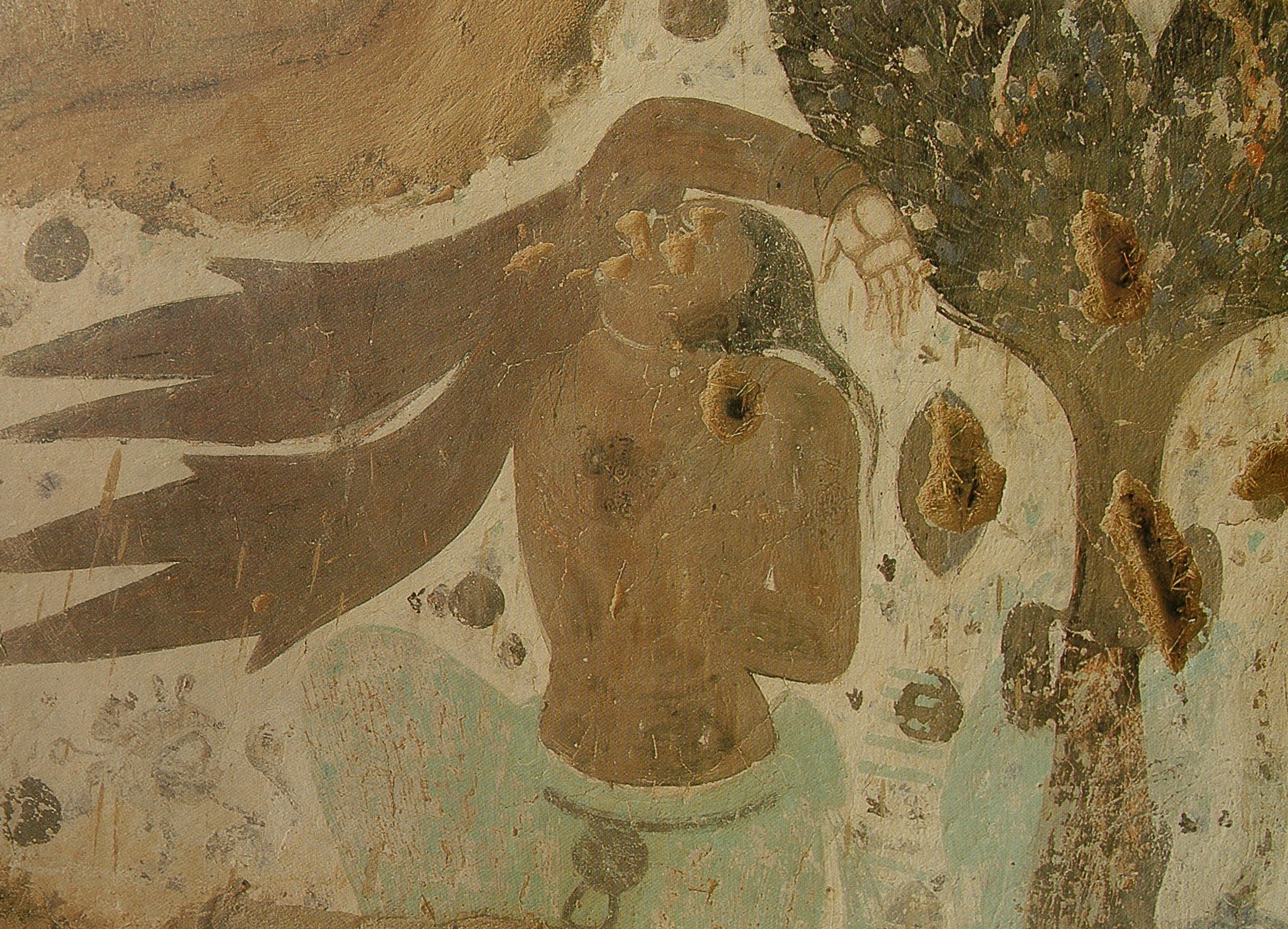 各洞窟中最常见的除了本生故事就是《涅槃经图》或称《涅槃经变图》。主要表现的是《大般泥洹经》的内容。德国考察队在上个世纪初在克孜尔石窟曾发现了一些梵文的《大般泥洹经》的写本和残片,一般认为是小乘“说一切有部”的经籍。