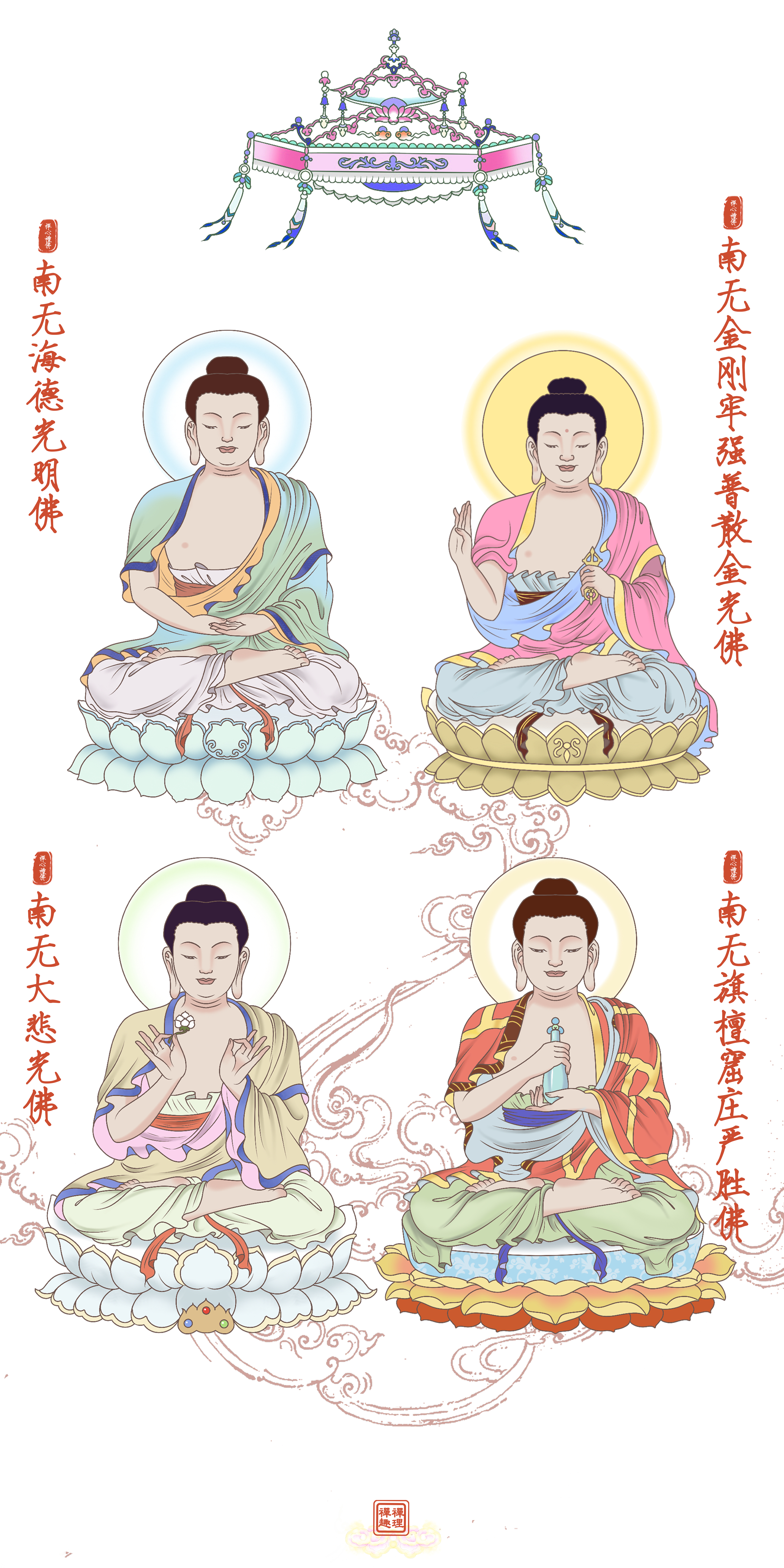 八十八佛之四尊大佛:南无海德光明佛、南无金刚牢强普散金光佛、南无大悲光佛、南无旃檀窟庄严胜佛 _4000x8000_meet.fo