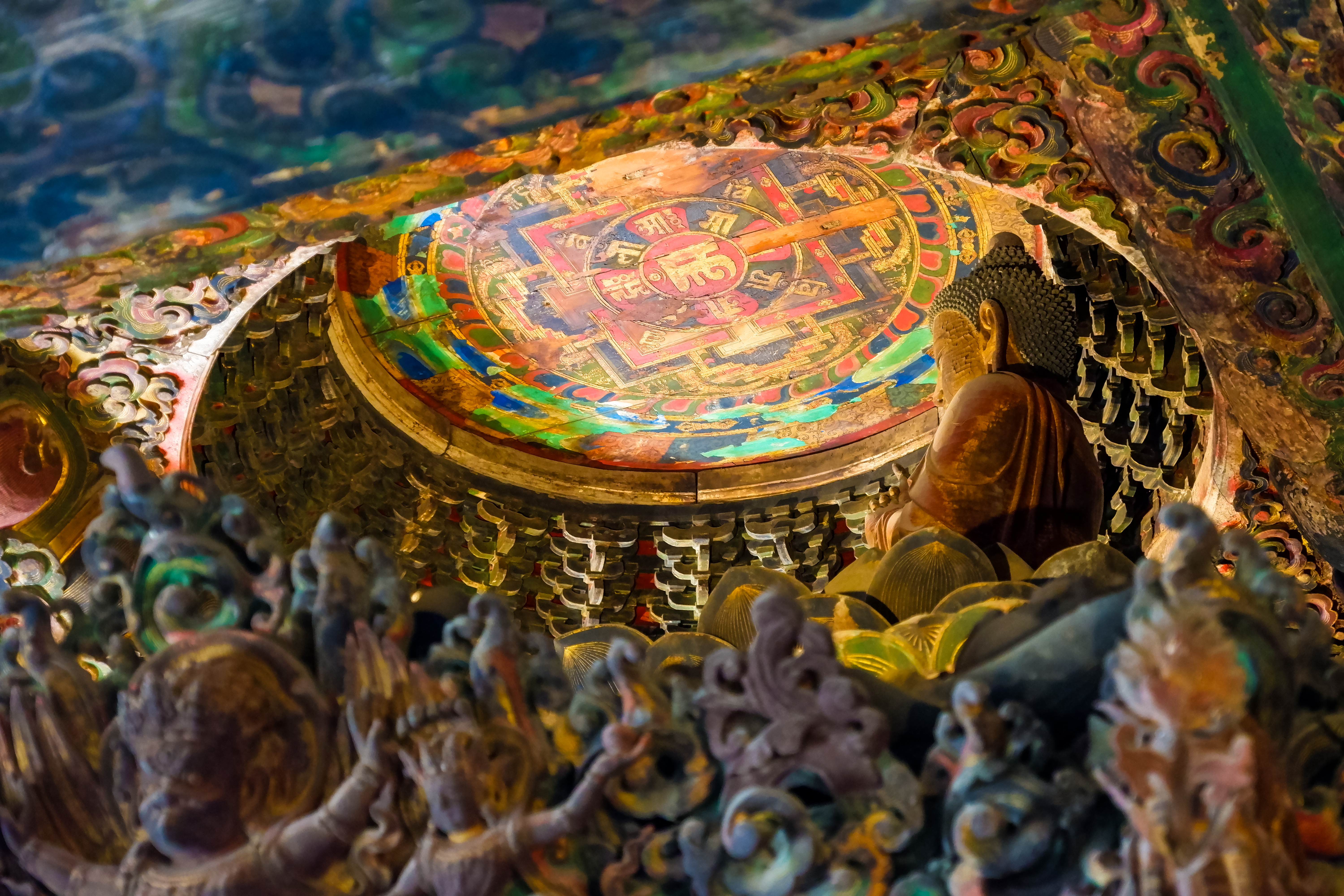 北京.东城.智化寺.藏殿.转轮藏.屋顶藻井与大日如来像1