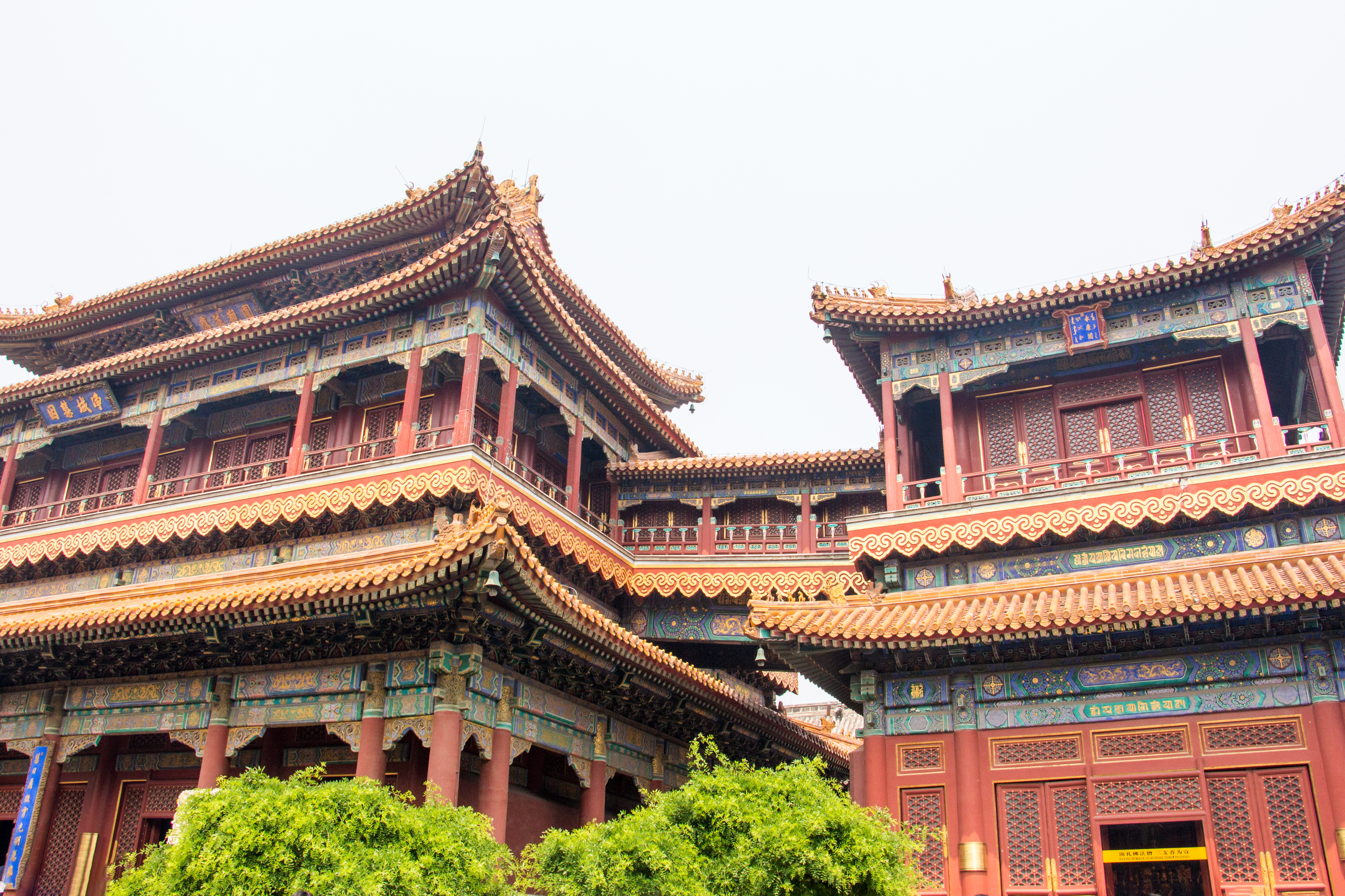 五朝故都北京,到处都散落着旧都遗迹,在北二环东北角内侧,就并列着三组规模庞大的古建筑群。西面那组,覆盖着标志中国封建社会等级最高的黄色琉璃瓦,基高殿大、规制整齐,那是元、明、清三朝中央最高学府国子监和祭祀孔夫子的场所孔庙。东面那组灰瓦红墙、格局严谨,则为元、明、清三朝京师“八大寺院”之一的柏林寺。在两者之间,坐落着另一组与之风格迥异、巍峨壮观的古建筑群,在一片土灰基色之中,格外凸显其辉煌庄严的皇家气势,这里就是清代朝廷首寺——雍和宫。