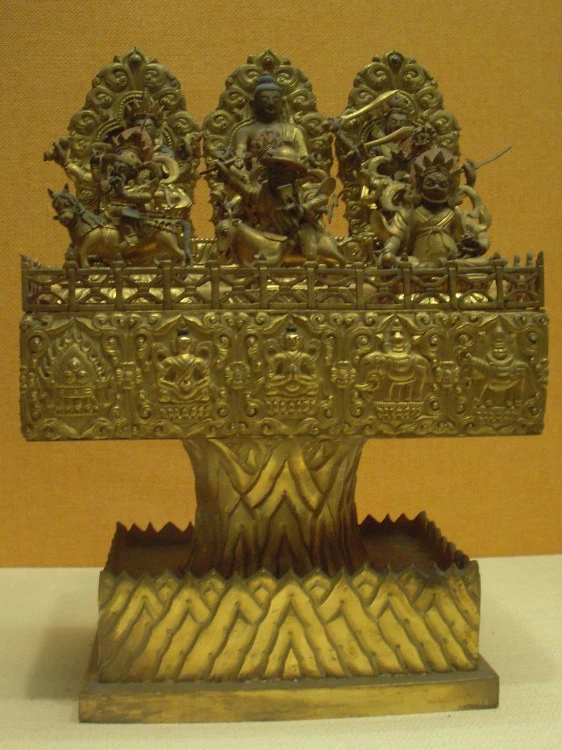 俗称铜打胎,即以薄铜板锤打而成。时轮殿内的时轮金刚双身像即是锤磔像中的精品。此像高210厘米,乾隆年造。其头有四面,身具二十四臂,削肩细腰,造型多有西藏地区特点。