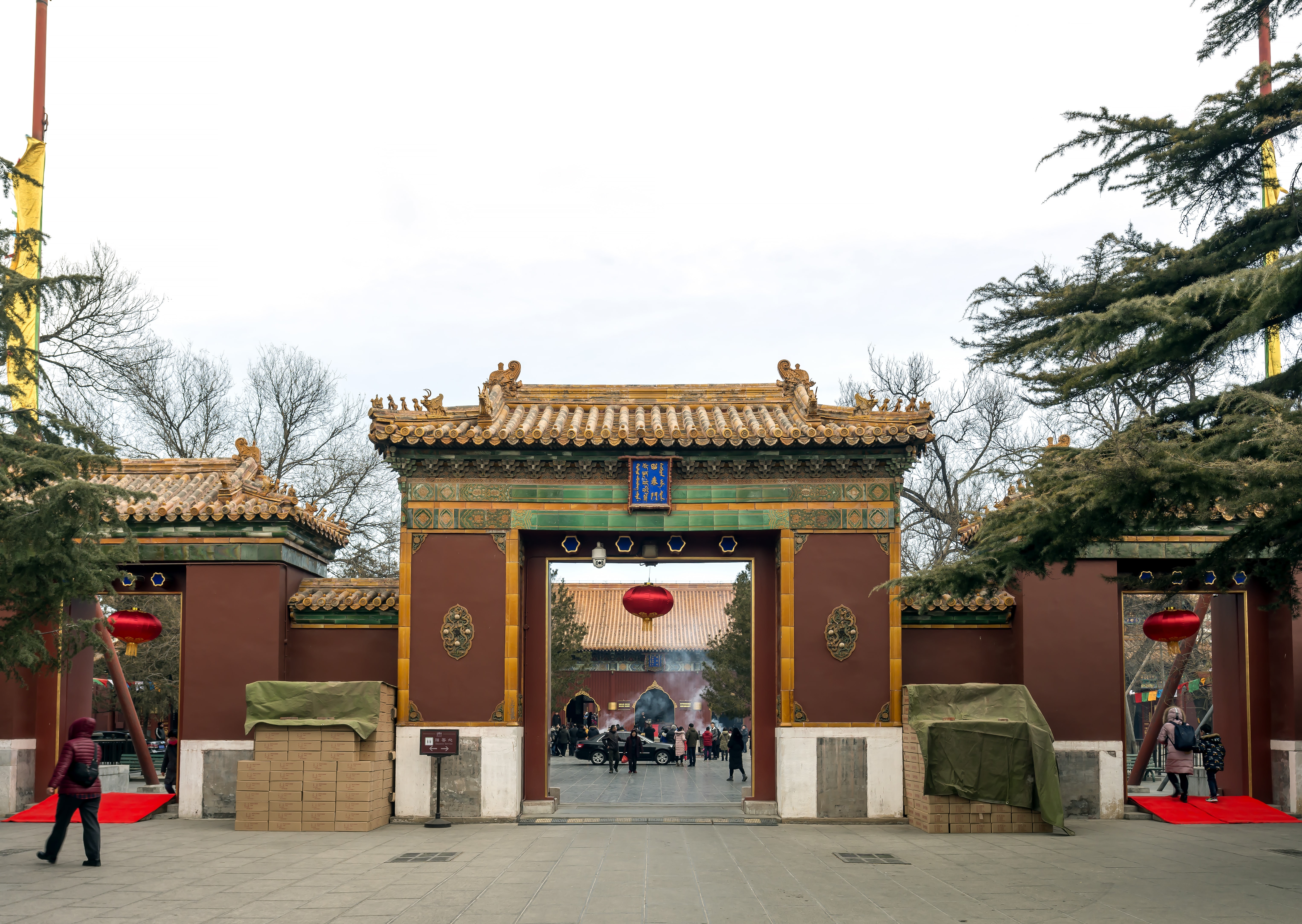五朝故都北京,到处都散落着旧都遗迹,在北二环东北角内侧,就并列着三组规模庞大的古建筑群。西面那组,覆盖着标志中国封建社会等级最高的黄色琉璃瓦,基高殿大、规制整齐,那是元、明、清三朝中央最高学府国子监和祭祀孔夫子的场所孔庙。东面那组灰瓦红墙、格局严谨,则为元、明、清三朝京师“八大寺院”之一的柏林寺。在两者之间,坐落着另一组与之风格迥异、巍峨壮观的古建筑群,在一片土灰基色之中,格外凸显其辉煌庄严的皇家气势,这里就是清代朝廷首寺——雍和宫。