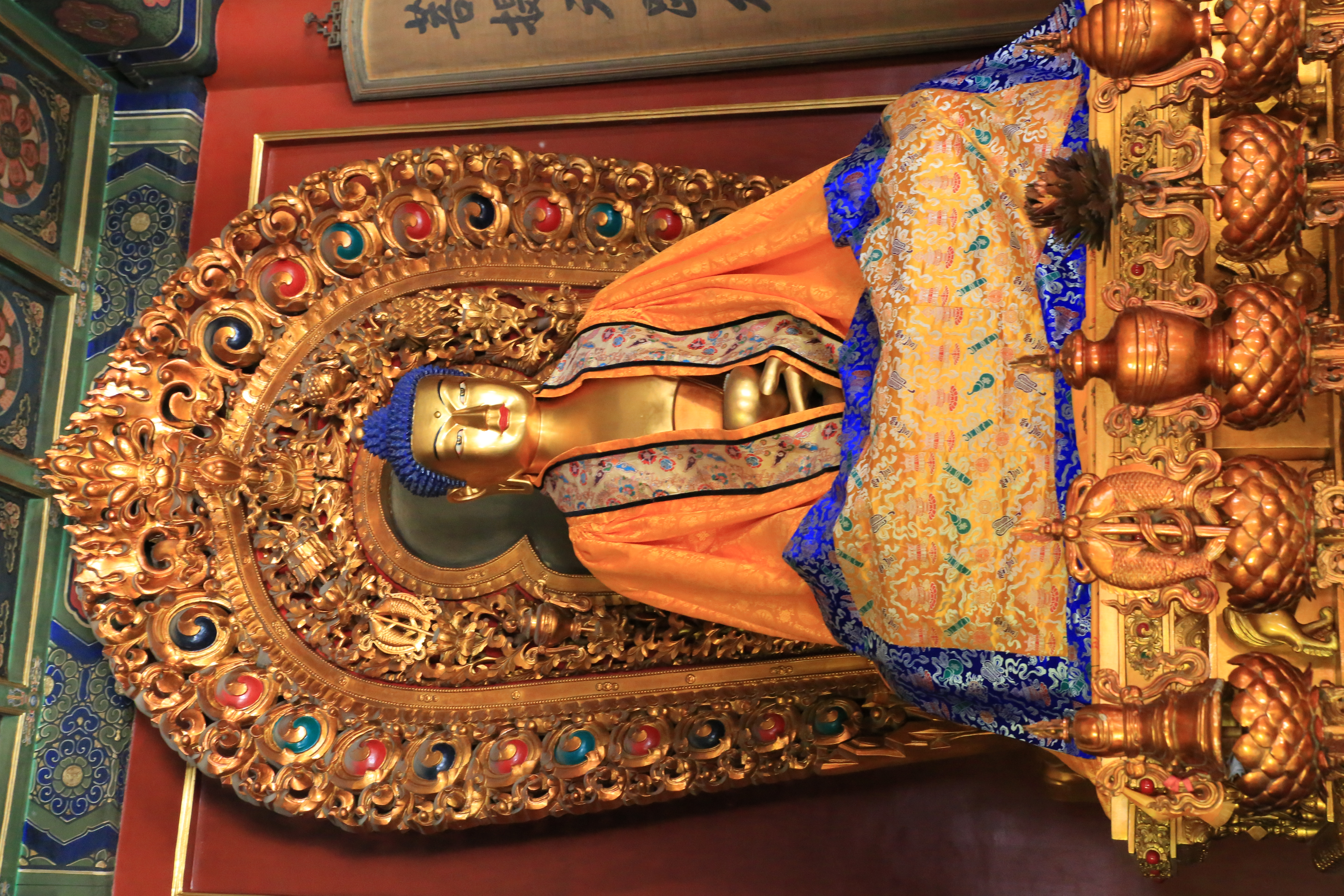 永佑殿殿内正中供奉的是无量寿佛。“无量寿佛”在天竺语称“阿弥陀佛”,是西方极乐世界的教主。