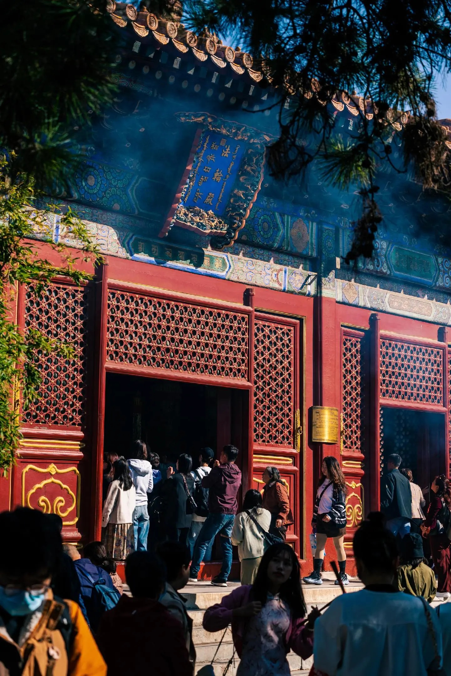 五朝故都北京,到处都散落着旧都遗迹,在北二环东北角内侧,就并列着三组规模庞大的古建筑群。西面那组,覆盖着标志中国封建社会等级最高的黄色琉璃瓦,基高殿大、规制整齐,那是元、明、清三朝中央最高学府国子监和祭祀孔夫子的场所孔庙。东面那组灰瓦红墙、格局严谨,则为元、明、清三朝京师“八大寺院”之一的柏林寺。在两者之间,坐落着另一组与之风格迥异、巍峨壮观的古建筑群,在一片土灰基色之中,格外凸显其辉煌庄严的皇家气势,这里就是清代朝廷首寺——雍和宫。