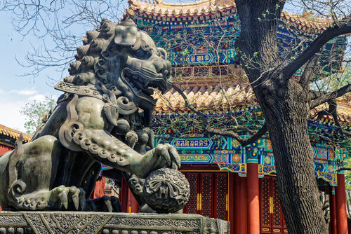 北京唯二的趴耳狮子:这对狮子在北京寺庙中独树一帜,它们通常出现在皇家办公之地。另一对趴在北海阐福寺,共同守护着这片神圣之地。