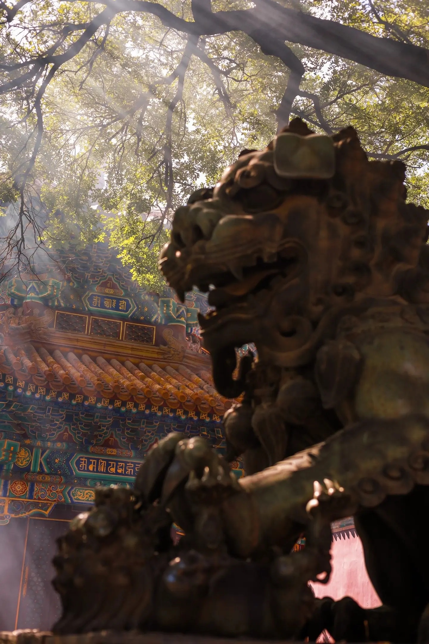 北京唯二的趴耳狮子:这对狮子在北京寺庙中独树一帜,它们通常出现在皇家办公之地。另一对趴在北海阐福寺,共同守护着这片神圣之地。