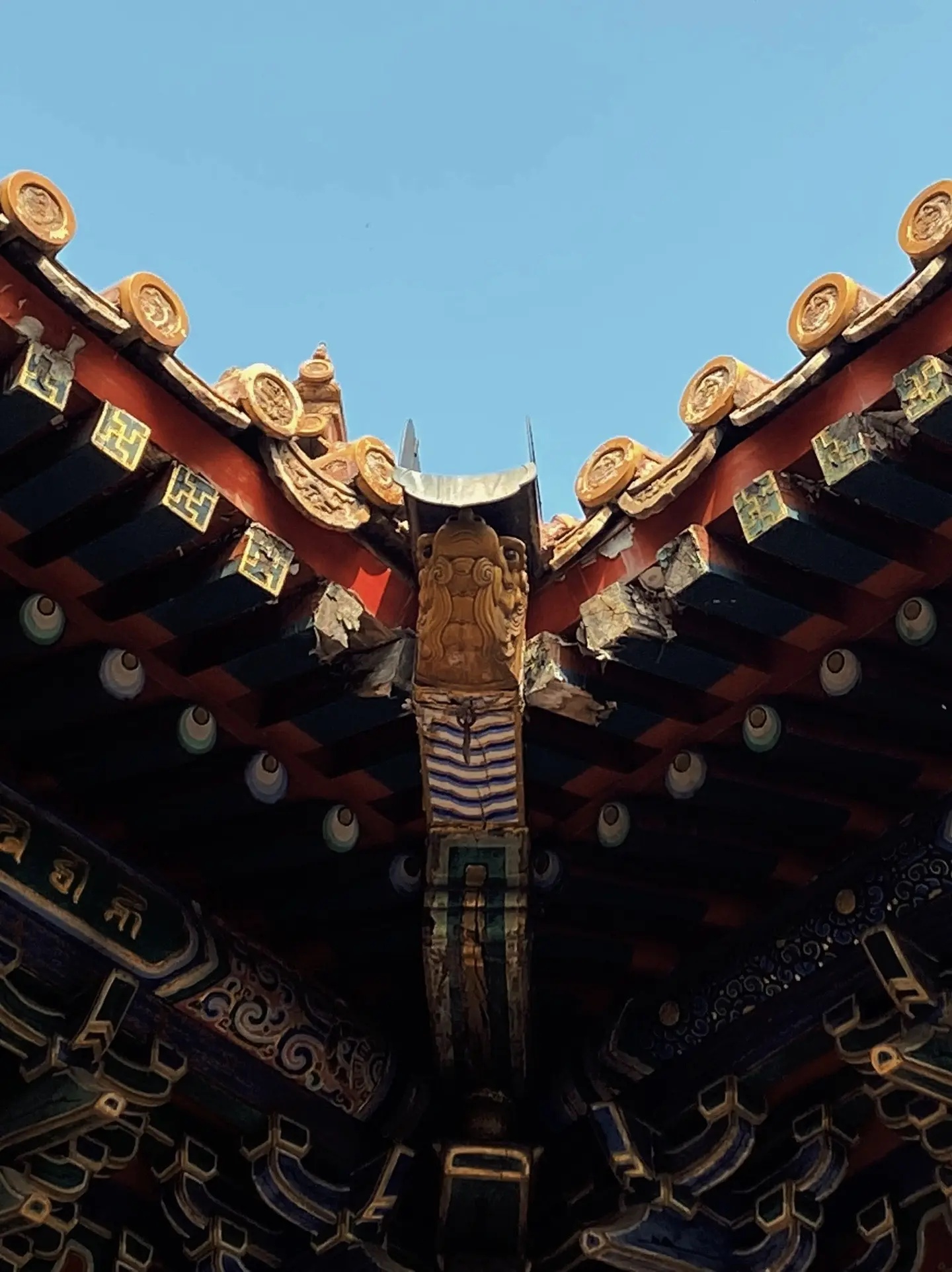 五朝故都北京,到处都散落着旧都遗迹,在北二环东北角内侧,就并列着三组规模庞大的古建筑群。西面那组,覆盖着标志中国封建社会等级最高的黄色琉璃瓦,基高殿大、规制整齐,那是元、明、清三朝中央最高学府国子监和祭祀孔夫子的场所孔庙。东面那组灰瓦红墙、格局严谨,则为元、明、清三朝京师“八大寺院”之一的柏林寺。在两者之间,坐落着另一组与之风格迥异、巍峨壮观的古建筑群,在一片土灰基色之中,格外凸显其辉煌庄严的皇家气势,这里就是清代朝廷首寺——雍和宫。