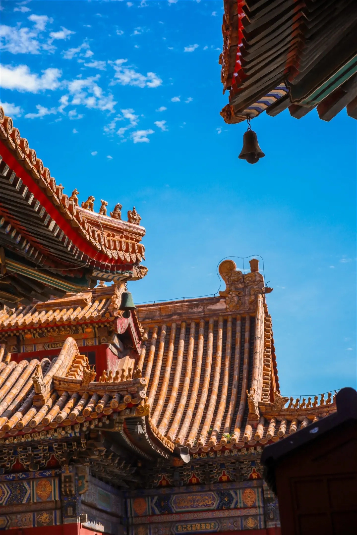 五朝故都北京,到处都散落着旧都遗迹,在北二环东北角内侧,就并列着三组规模庞大的古建筑群。西面那组,覆盖着标志中国封建社会等级最高的黄色琉璃瓦,基高殿大、规制整齐,那是元、明、清三朝中央最高学府国子监和祭祀孔夫子的场所孔庙。东面那组灰瓦红墙、格局严谨,则为元、明、清三朝京师“八大寺院”之一的柏林寺。在两者之间,坐落着另一组与之风格迥异、巍峨壮观的古建筑群,在一片土灰基色之中,格外凸显其辉煌庄严的皇家气势,这里就是清代朝廷首寺——雍和宫。