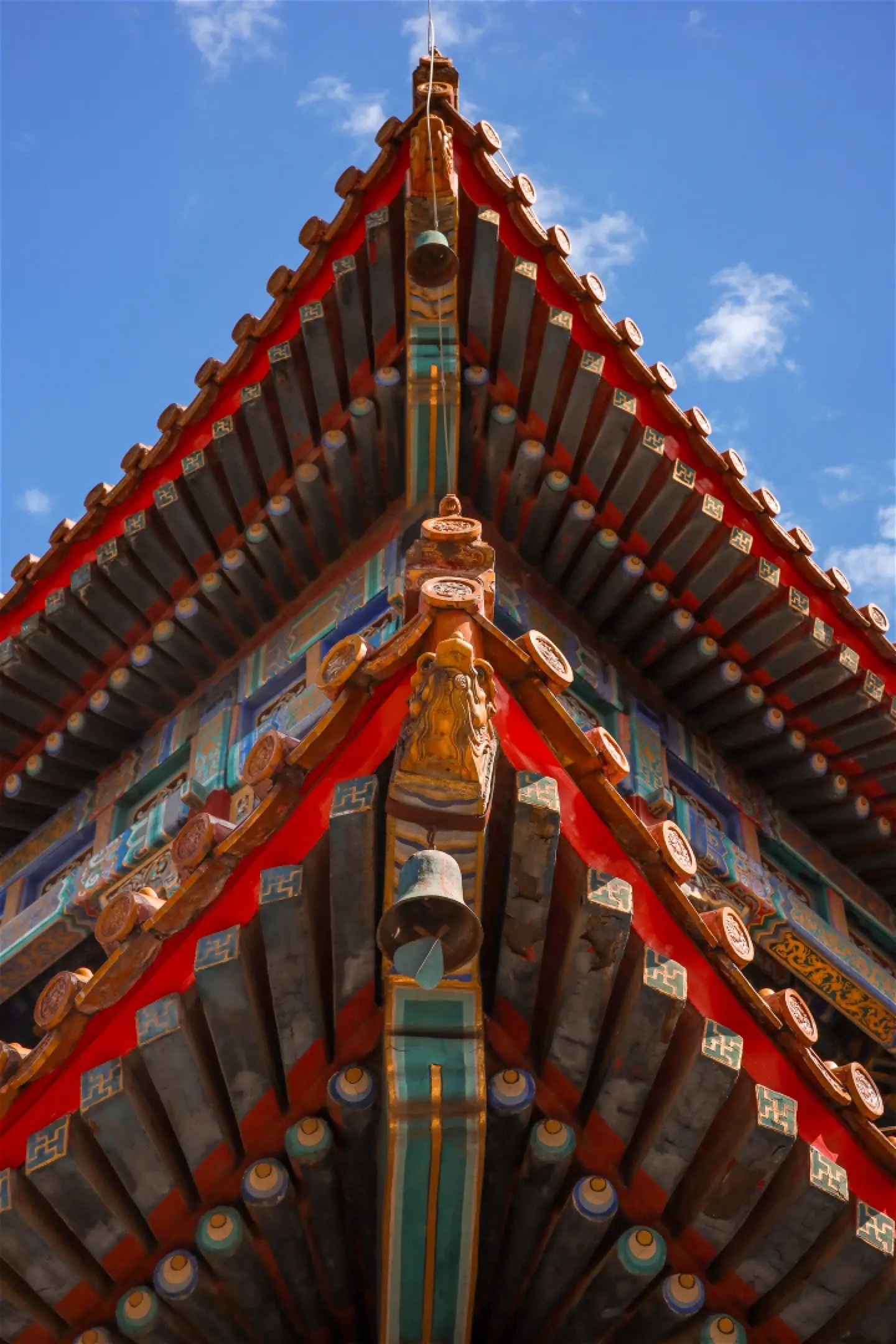 五朝故都北京,到处都散落着旧都遗迹,在北二环东北角内侧,就并列着三组规模庞大的古建筑群。西面那组,覆盖着标志中国封建社会等级最高的黄色琉璃瓦,基高殿大、规制整齐,那是元、明、清三朝中央最高学府国子监和祭祀孔夫子的场所孔庙。东面那组灰瓦红墙、格局严谨,则为元、明、清三朝京师“八大寺院”之一的柏林寺。在两者之间,坐落着另一组与之风格迥异、巍峨壮观的古建筑群,在一片土灰基色之中,格外凸显其辉煌庄严的皇家气势,这里就是清代朝廷首寺——雍和宫。