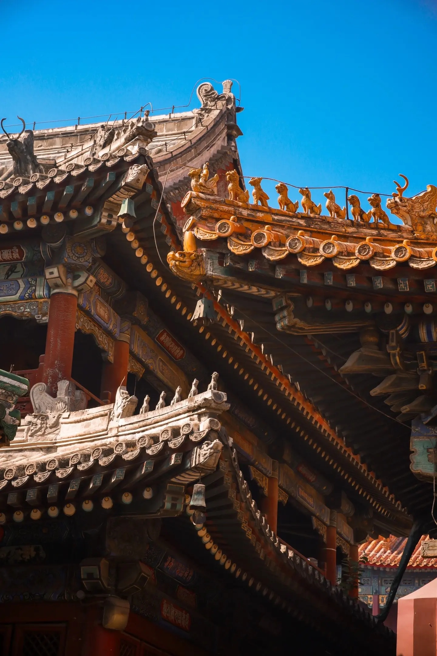 五朝故都北京,到处都散落着旧都遗迹,在北二环东北角内侧,就并列着三组规模庞大的古建筑群。西面那组,覆盖着标志中国封建社会等级最高的黄色琉璃瓦,基高殿大、规制整齐,那是元、明、清三朝中央最高学府国子监和祭祀孔夫子的场所孔庙。东面那组灰瓦红墙、格局严谨,则为元、明、清三朝京师“八大寺院”之一的柏林寺。在两者之间,坐落着另一组与之风格迥异、巍峨壮观的古建筑群,在一片土灰基色之中,格外凸显其辉煌庄严的皇家气势,这里就是清代朝廷首寺——雍和宫。