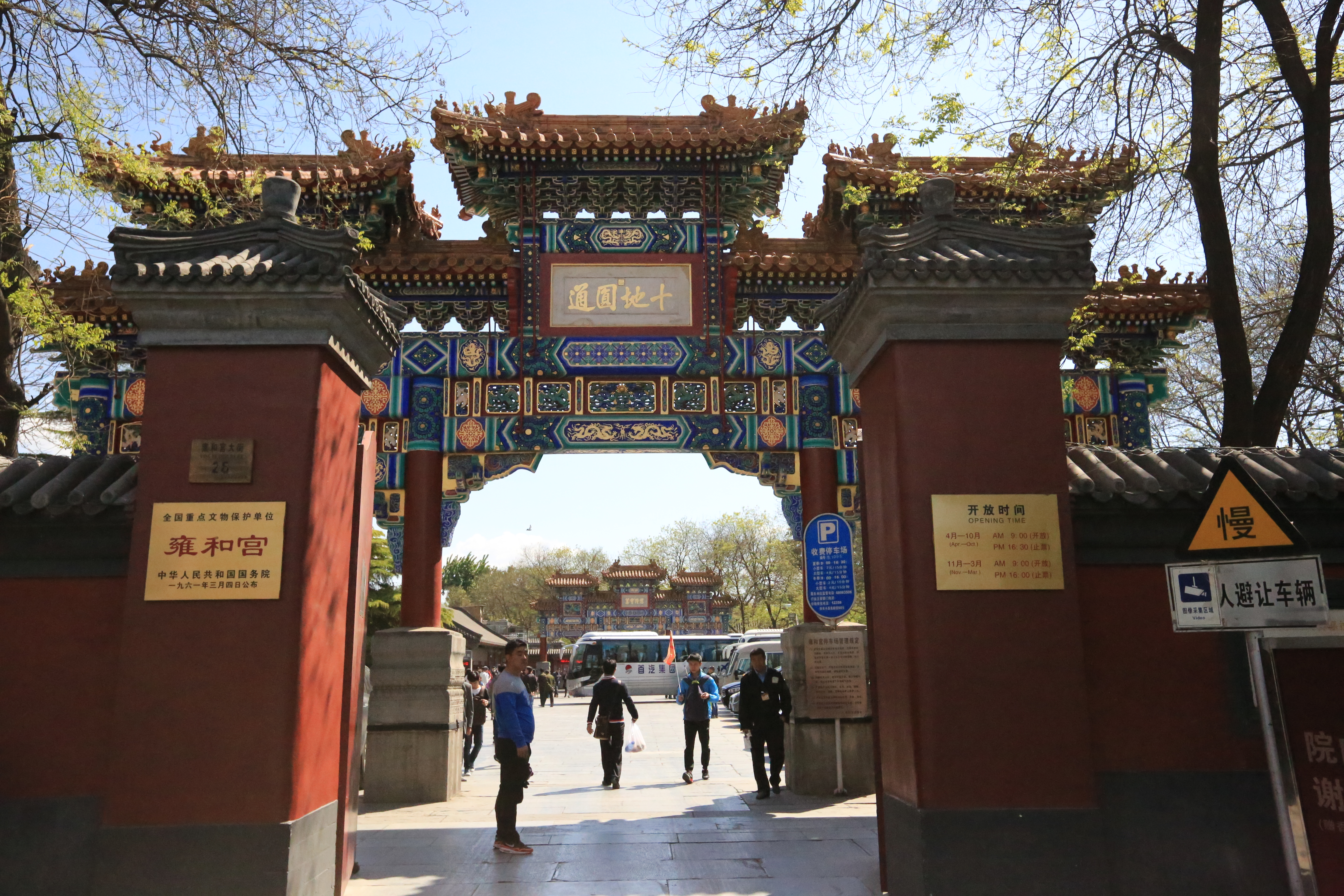 雍和宫入口标识牌匾及乾隆皇帝御题“十地圆通”坊额