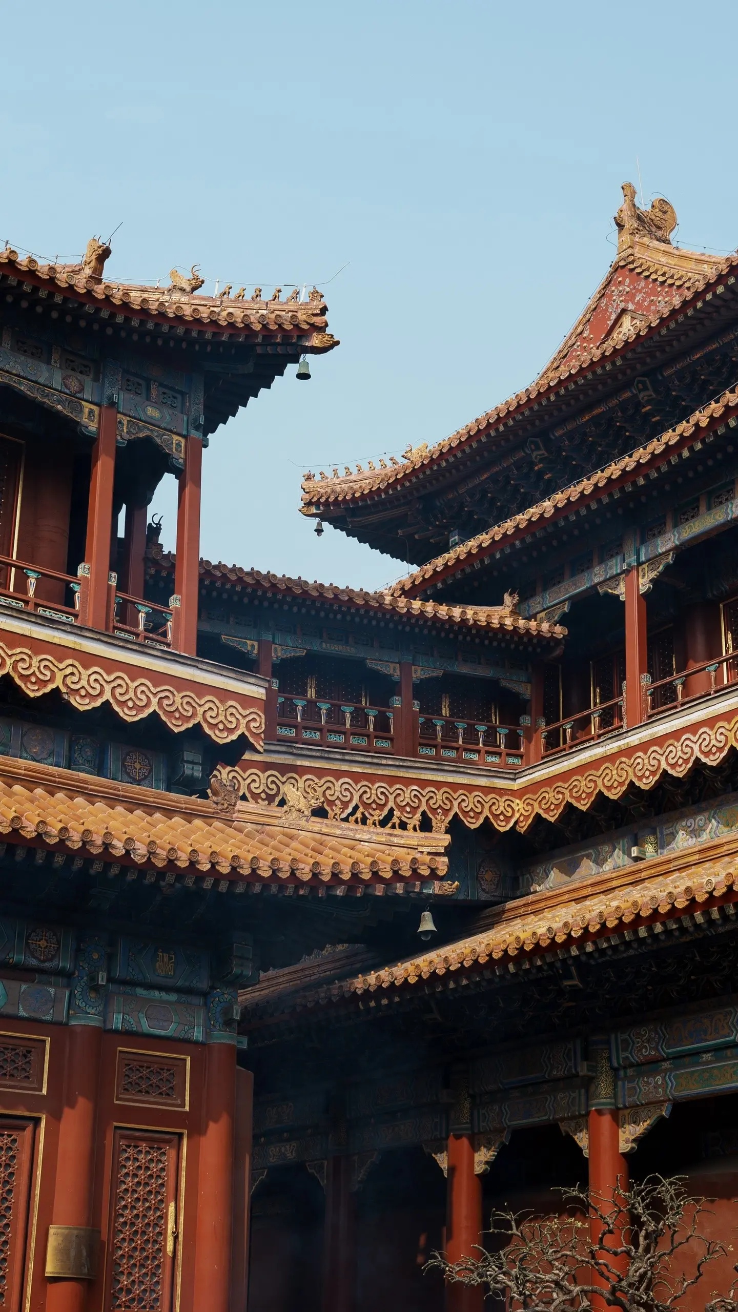 五朝故都北京,到处都散落着旧都遗迹,在北二环东北角内侧,就并列着三组规模庞大的古建筑群。西面那组,覆盖着标志中国封建社会等级最高的黄色琉璃瓦,基高殿大、规制整齐,那是元、明、清三朝中央最高学府国子监和祭祀孔夫子的场所孔庙。东面那组灰瓦红墙、格局严谨,则为元、明、清三朝京师“八大寺院”之一的柏林寺。在两者之间,坐落着另一组与之风格迥异、巍峨壮观的古建筑群,在一片土灰基色之中,格外凸显其辉煌庄严的皇家气势,这里就是清代朝廷首寺——雍和宫。