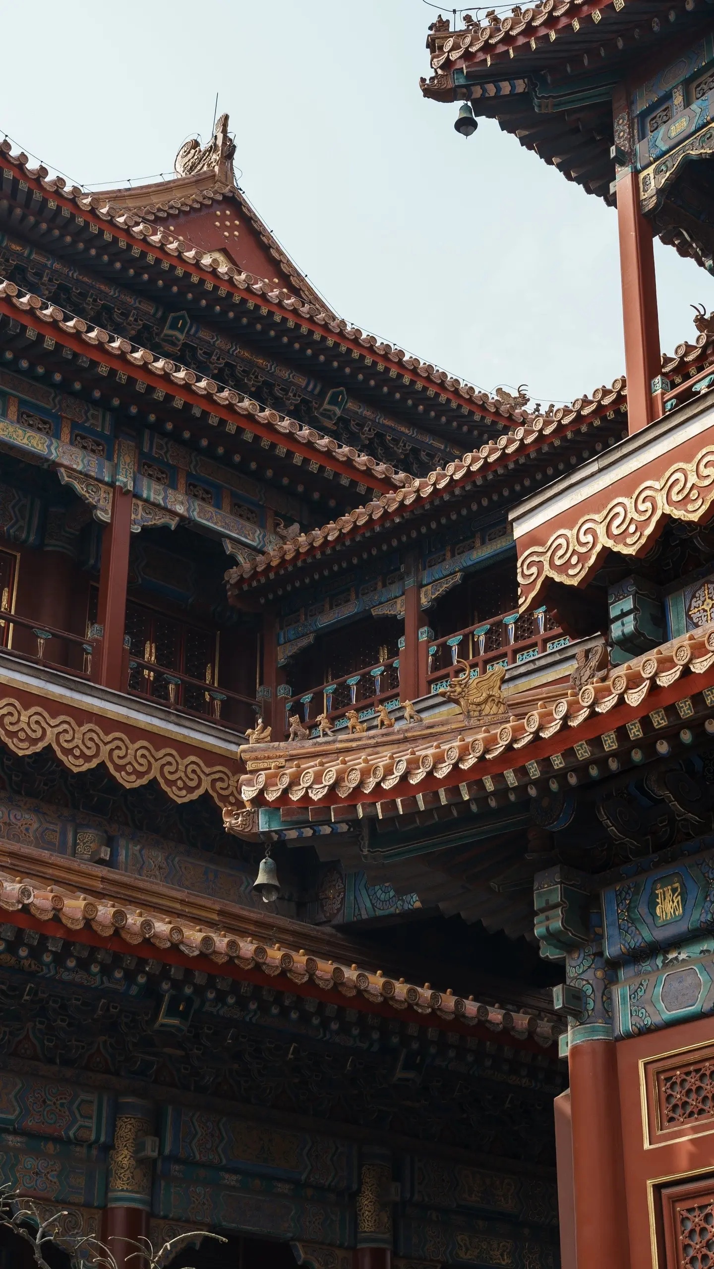 五朝故都北京,到处都散落着旧都遗迹,在北二环东北角内侧,就并列着三组规模庞大的古建筑群。西面那组,覆盖着标志中国封建社会等级最高的黄色琉璃瓦,基高殿大、规制整齐,那是元、明、清三朝中央最高学府国子监和祭祀孔夫子的场所孔庙。东面那组灰瓦红墙、格局严谨,则为元、明、清三朝京师“八大寺院”之一的柏林寺。在两者之间,坐落着另一组与之风格迥异、巍峨壮观的古建筑群,在一片土灰基色之中,格外凸显其辉煌庄严的皇家气势,这里就是清代朝廷首寺——雍和宫。