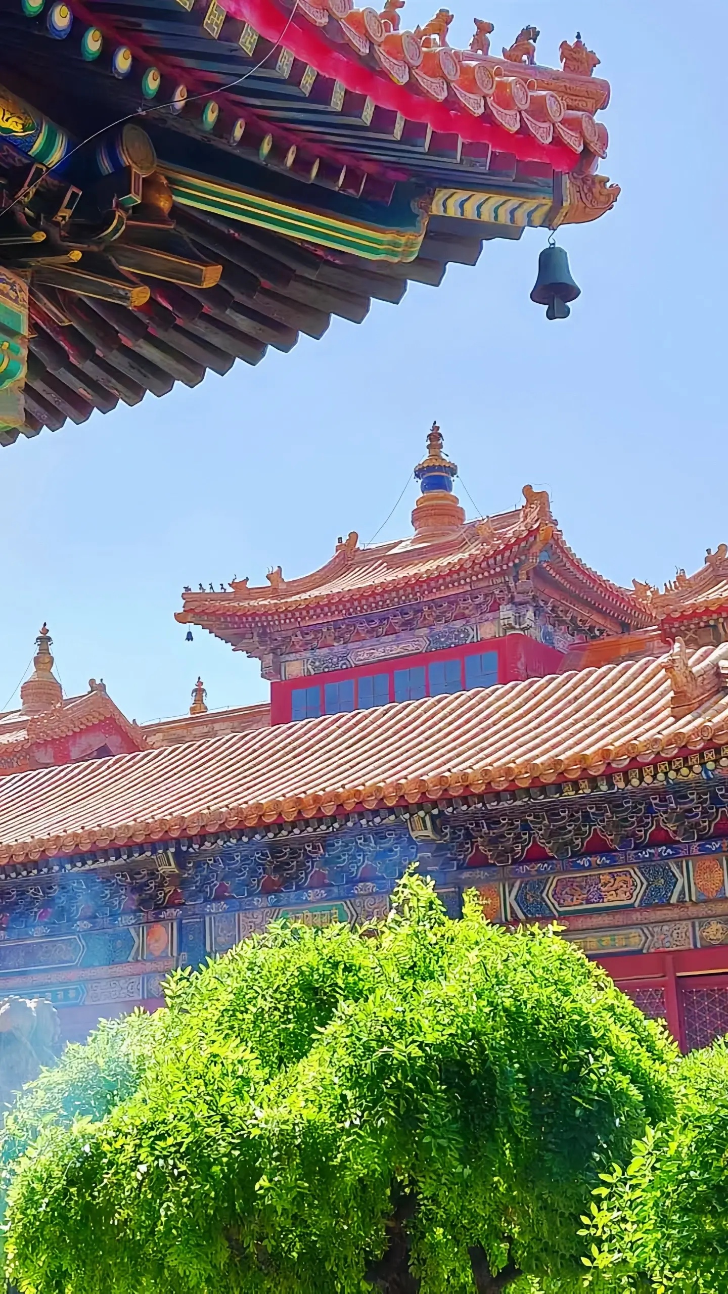 五朝故都北京,到处都散落着旧都遗迹,在北二环东北角内侧,就并列着三组规模庞大的古建筑群。西面那组,覆盖着标志中国封建社会等级最高的黄色琉璃瓦,基高殿大、规制整齐,那是元、明、清三朝中央最高学府国子监和祭祀孔夫子的场所孔庙。东面那组灰瓦红墙、格局严谨,则为元、明、清三朝京师“八大寺院”之一的柏林寺。在两者之间,坐落着另一组与之风格迥异、巍峨壮观的古建筑群,在一片土灰基色之中,格外凸显其辉煌庄严的皇家气势,这里就是清代朝廷首寺——雍和宫。