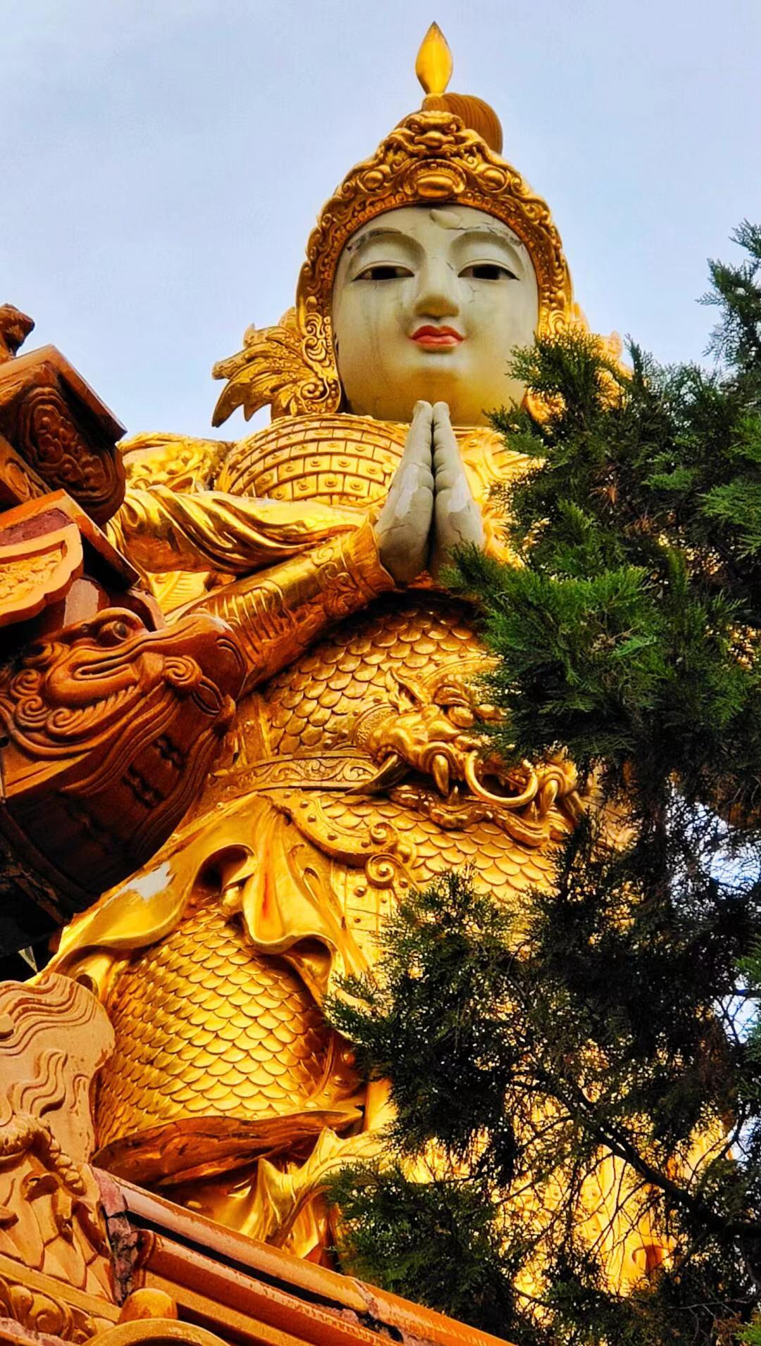 影壁墙的右侧是“车神殿”化身车神的观音又称马头观音,宝像通体赤红、三面六臂形像端严威猛,震慑魔障。许多车友慕名前来祈福,祈求出入平安、一帆风顺、逢凶化吉。
