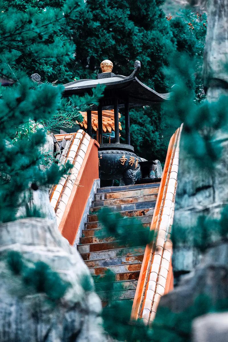 这座云雷阁建在一座水池之上,正中安放着一口大钟。它的雕塑极为特别,有代表五行的青赤黄蓝黑五色巨龙盘绕其上,左右还各有两只凤凰环绕,都寓意着吉祥如意。正上方有一尊金色的孩童塑像,其再现的是佛祖释迦摩尼出生时,一手指天,一手指地的场景。云雷阁内悬挂的365平安大钟,耗时三年铸成。“其重五十六吨、象征中华五十六个民族,直径3.65米、寓意众生365天风调雨顺、国泰民安。此钟比大钟寺内永乐大钟还要重9.5吨,堪称华北第一钟”。