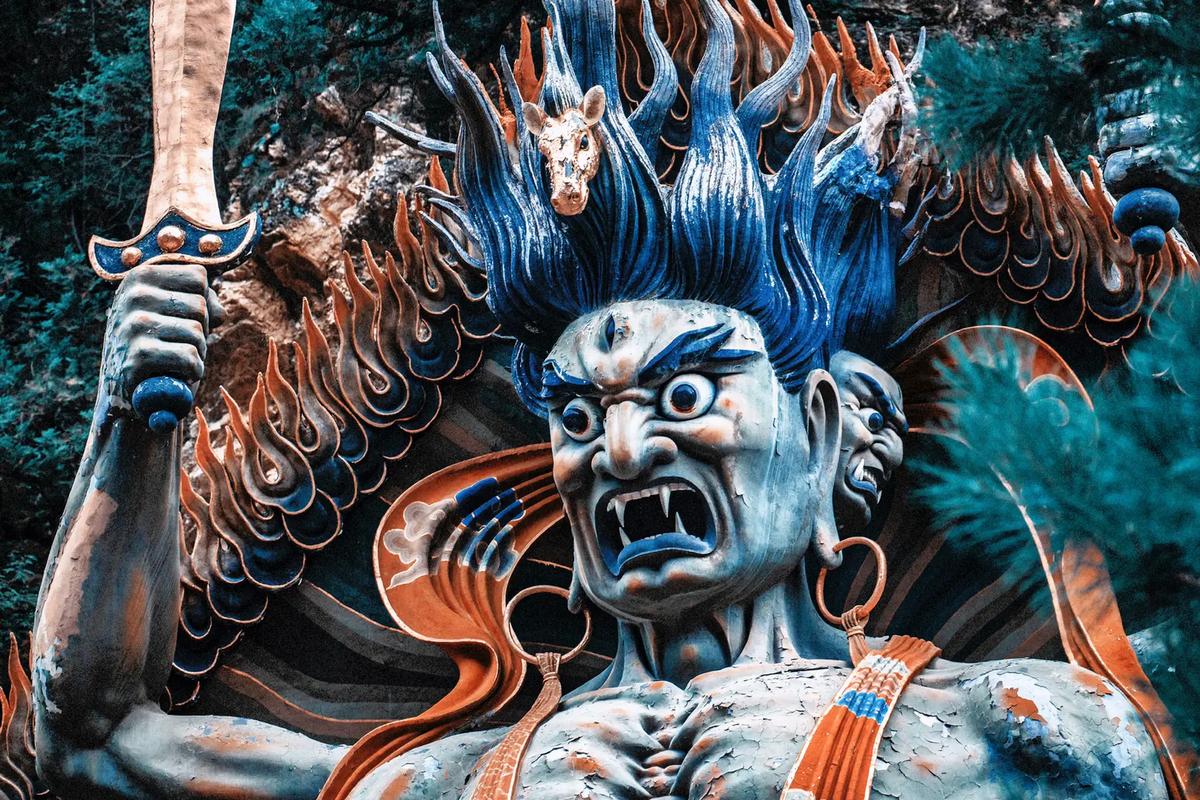 影壁墙的右侧是“车神殿”化身车神的观音又称马头观音,宝像通体赤红、三面六臂形像端严威猛,震慑魔障。许多车友慕名前来祈福,祈求出入平安、一帆风顺、逢凶化吉。