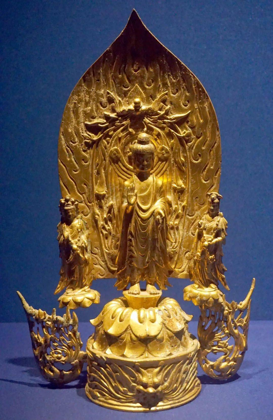 北魏末_西魏铜鎏金_一佛二菩萨像