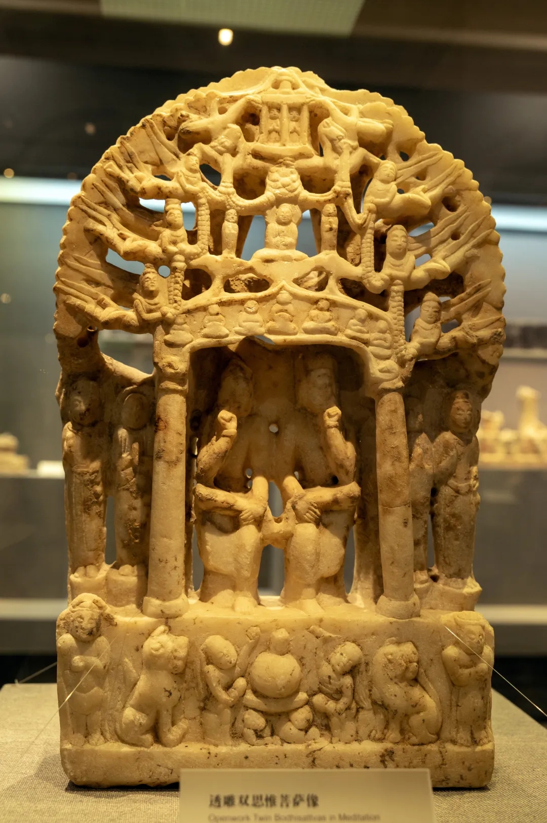 北齐·白石透雕双菩萨思惟像.河北定州博物馆藏