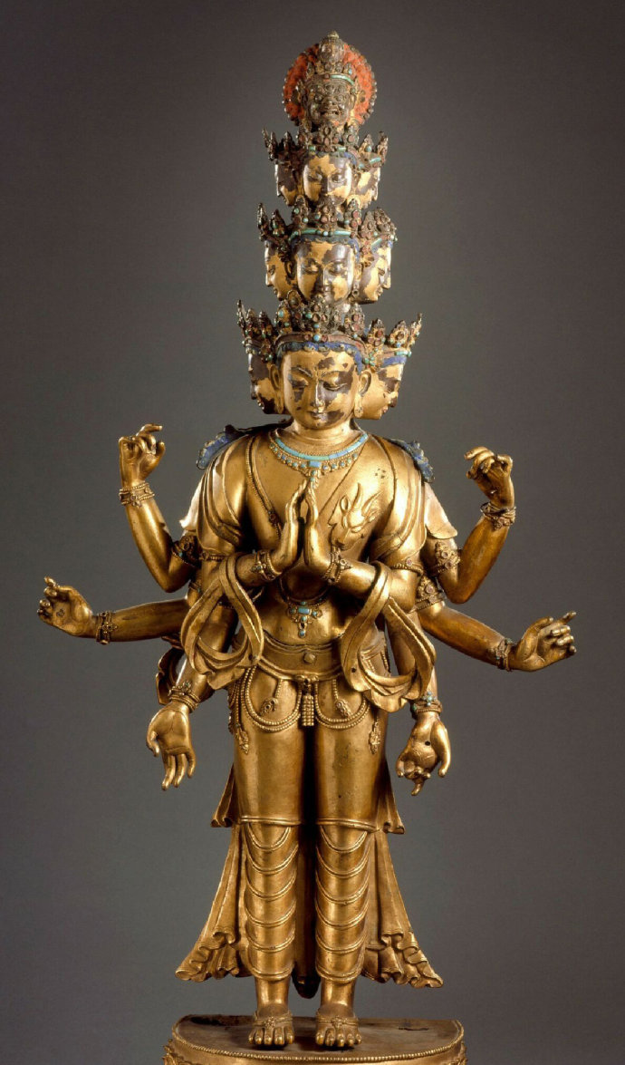 十六世纪 西藏中部_镀金铜合金 镶饰绿松石_十一面八臂观音造像_美国洛杉矶县立博物馆_3