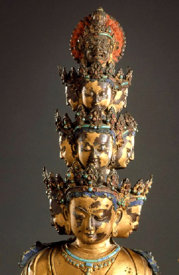 十六世纪 西藏中部_镀金铜合金 镶饰绿松石_十一面八臂观音造像_美国洛杉矶县立博物馆_5