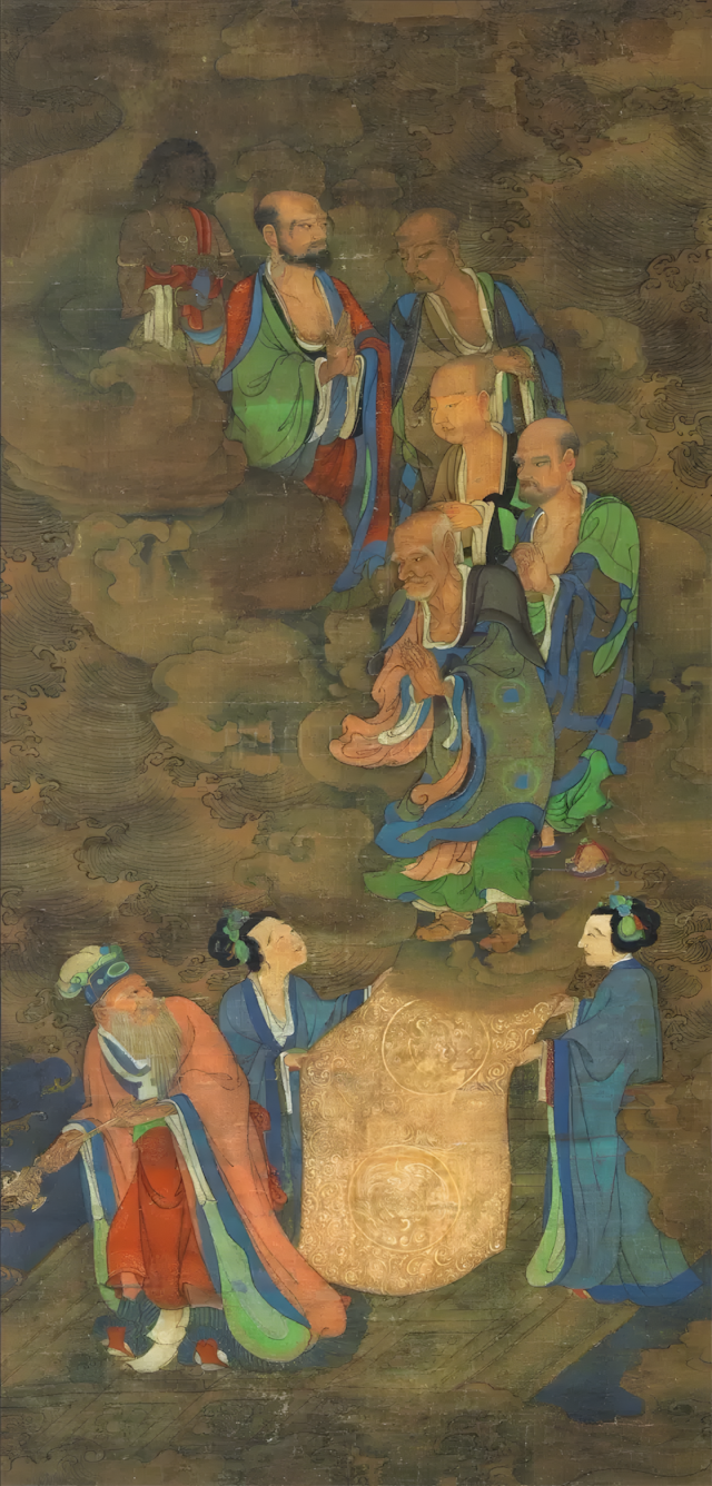 南宋_周季常_五百罗汉图_006_龙宫飞来