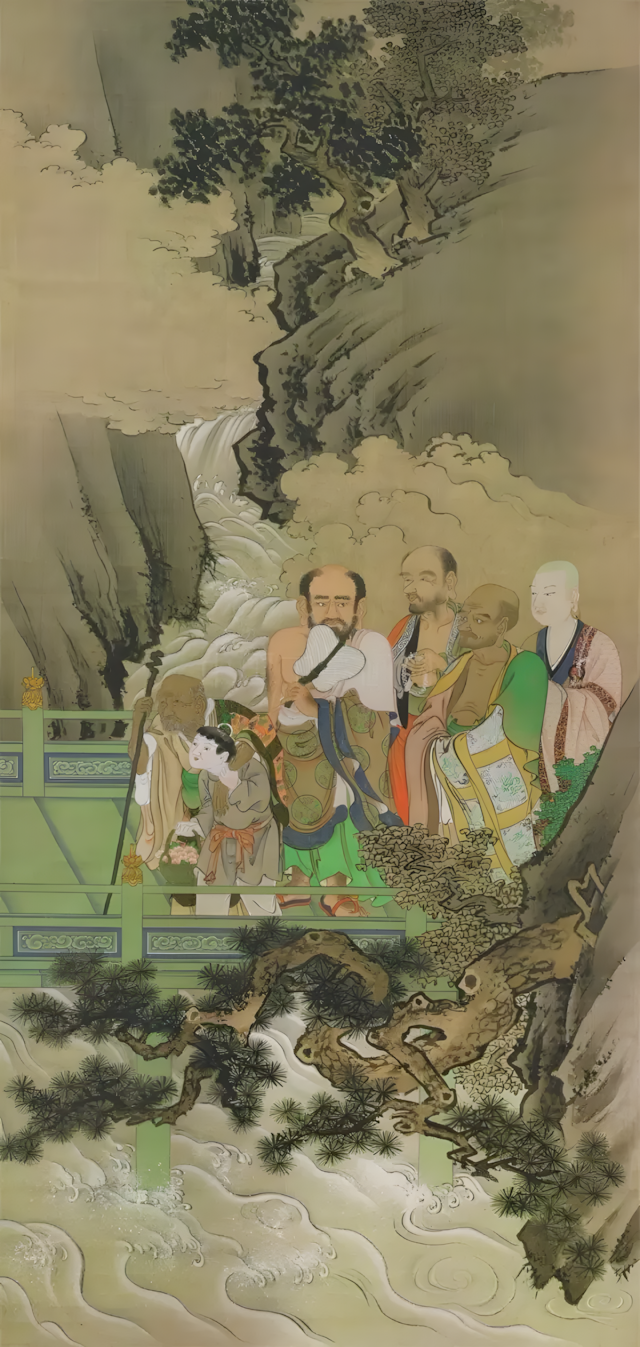 南宋_周季常_五百罗汉图_099_渡桥(木村德应 绘)