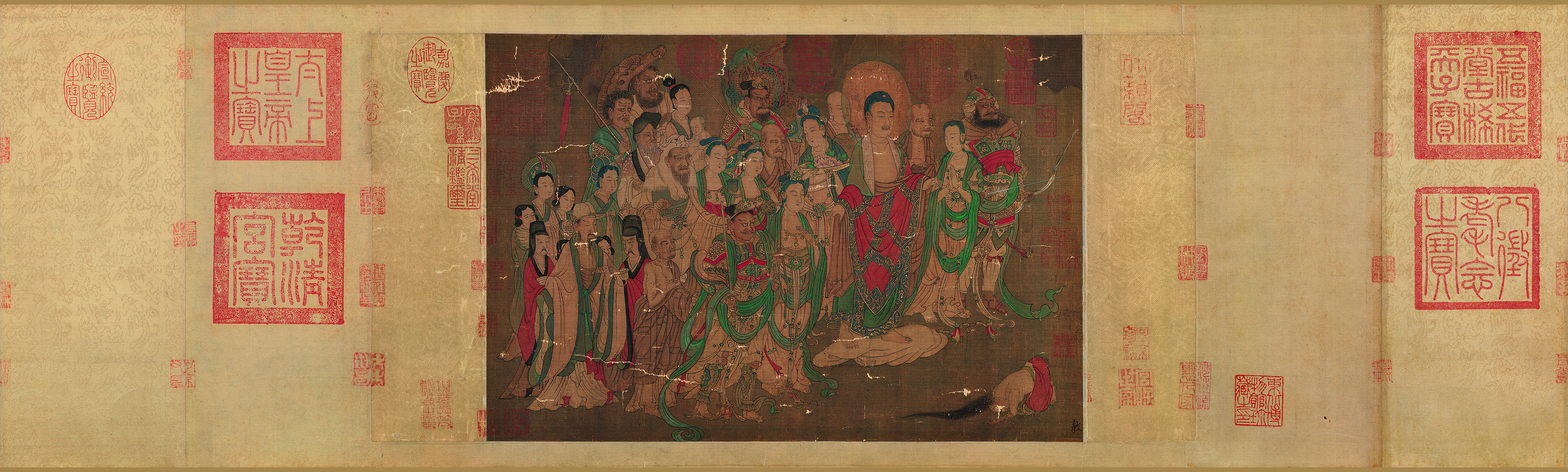南宋_燃灯佛授记释迦文图卷(画心)绢本【大图编号-A982】104x31_3418x1028_meet.fo