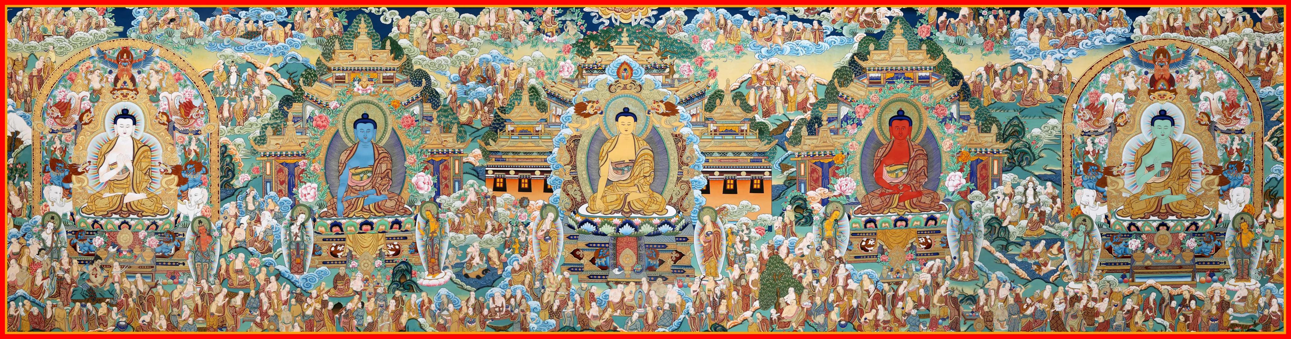唐卡《五方佛与五百罗汉》中国工艺美术大师斗尕_4109x1080_meet.fo