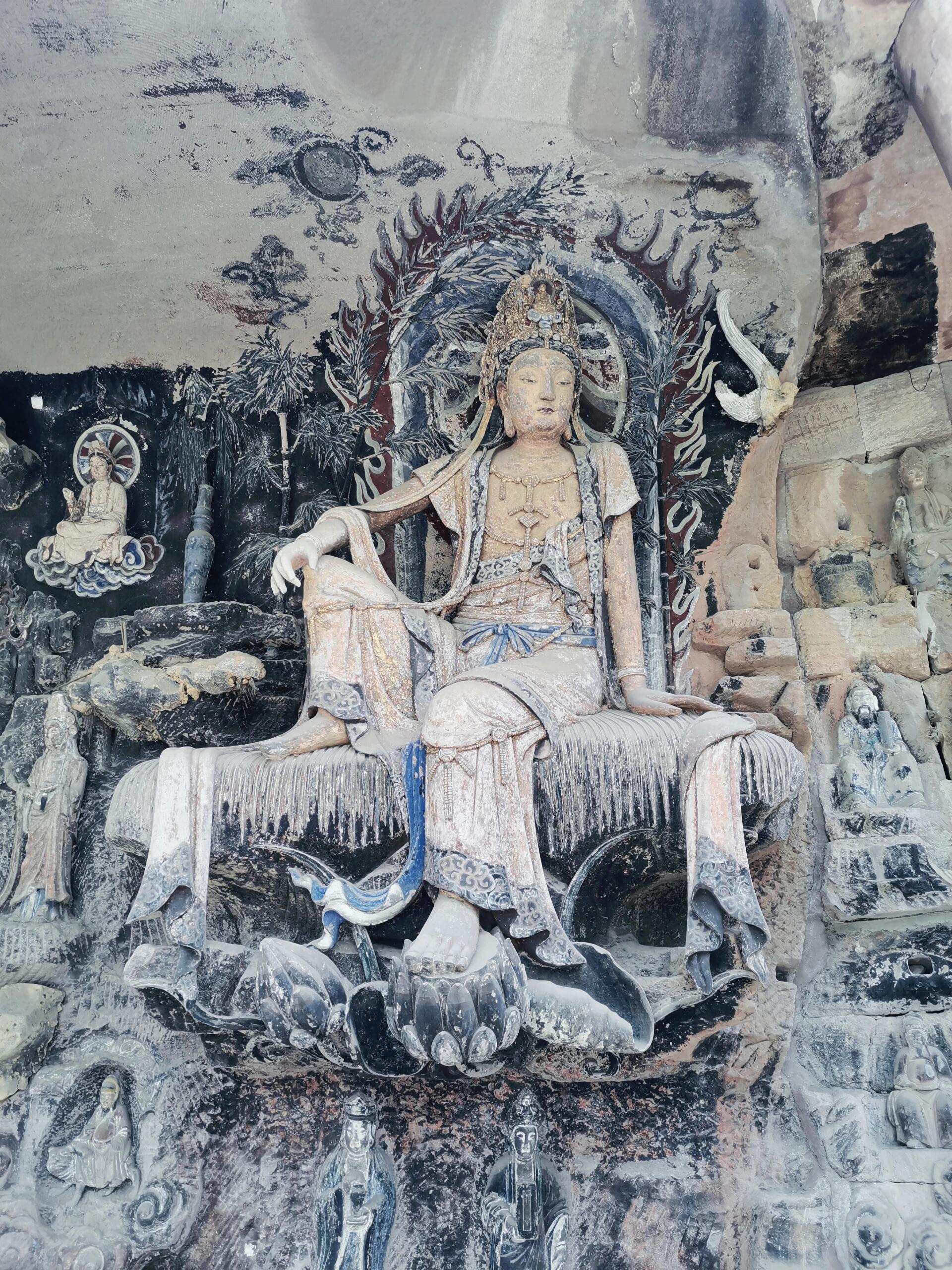 安岳石窟开凿于启始于南梁武帝普通二年(公元521年),盛于唐宋两代,延续至明清直到民国,几乎每个乡都有大型石窟造像遗址,为民间结社造像,其中以佛教石窟为主,也有部分道教造像,三教合一的造像也不在少数,安岳石窟拥有几大之最:最大的唐代左侧石刻卧佛以及21万字石刻佛经、中国最精美的观音经变像-----毗卢洞北宋紫竹观音、唐代最大的道教石刻群——玄妙观、五代最集中的石窟群——庵堂寺等,安岳石窟除少数遭受自然人为破坏妆彩外,大部分保存完好,特别是宋代造型更是达到中国石窟艺术的巅峰,具有很高的观赏价值。