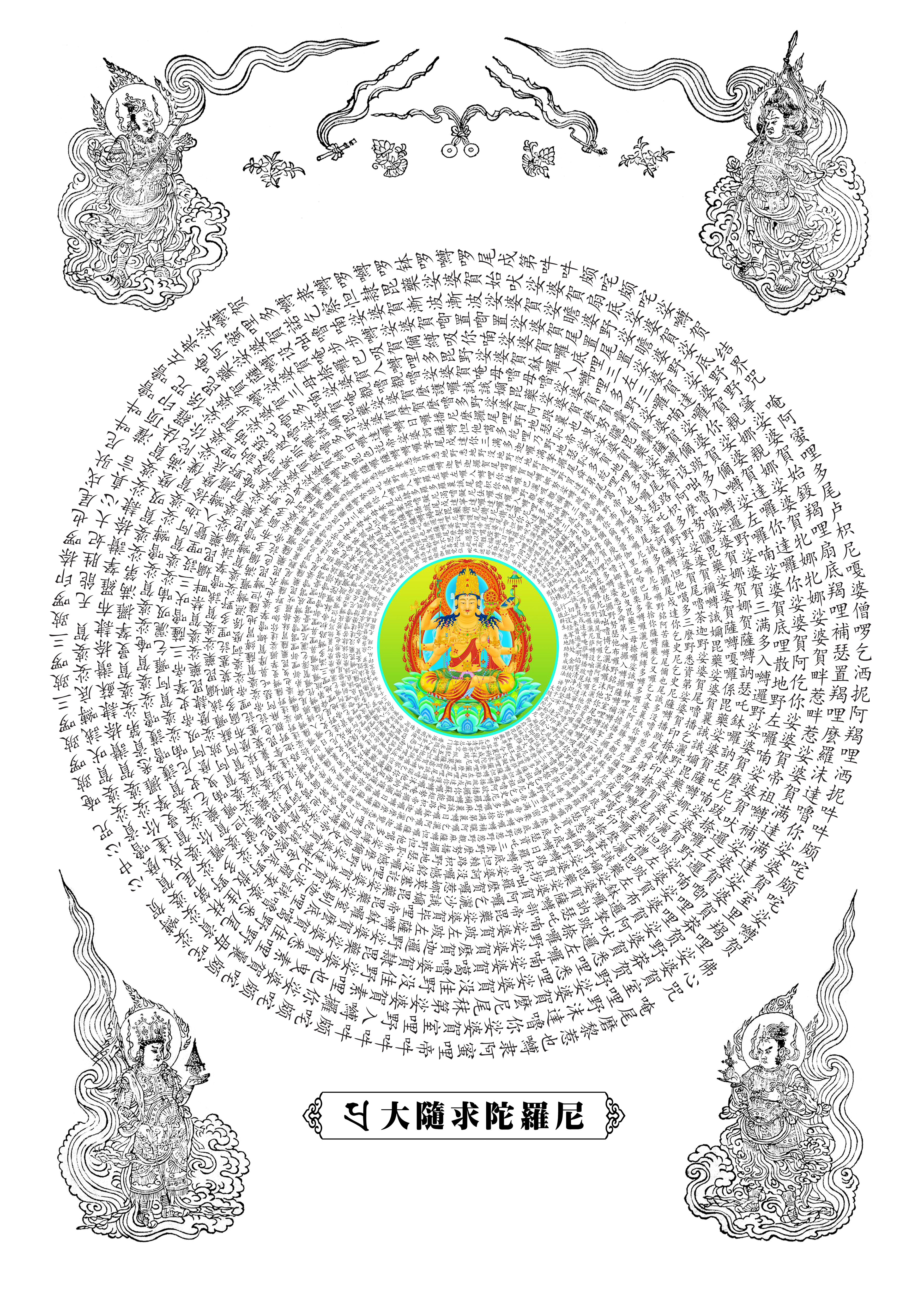 此咒轮依据宋代大随求咒轮修复制作,咒文依据台湾慧律法师的大随求中文教念版逐字校队。 咒轮可供奉,也可打印后,以九宫格折法,折叠后恭敬佩戴于上身,可护身消业增福。 <div><br></div>