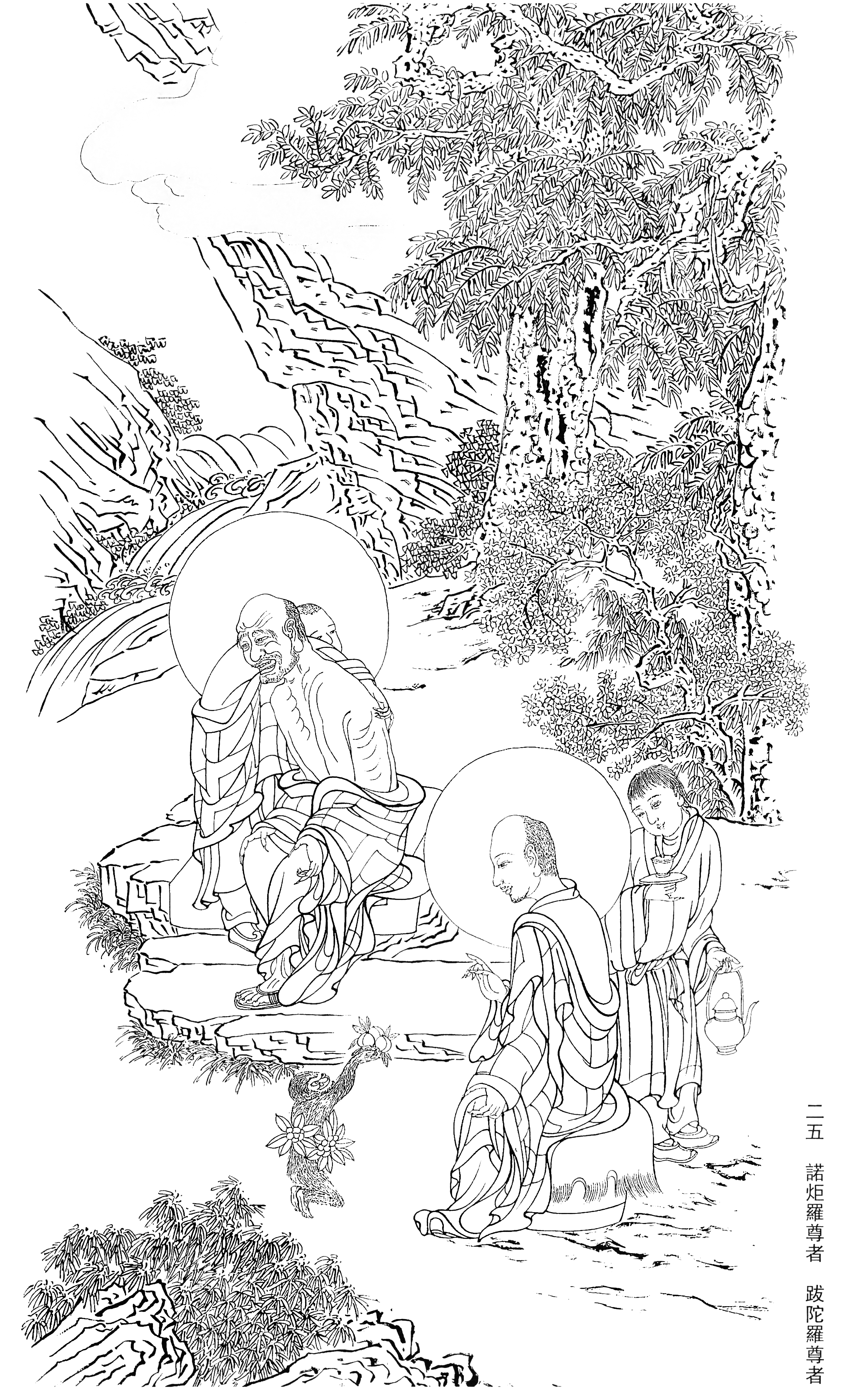 宝宁寺水陆画线稿_25.诺炬罗尊者 跋陀罗尊者_3976x6431_meet.fo