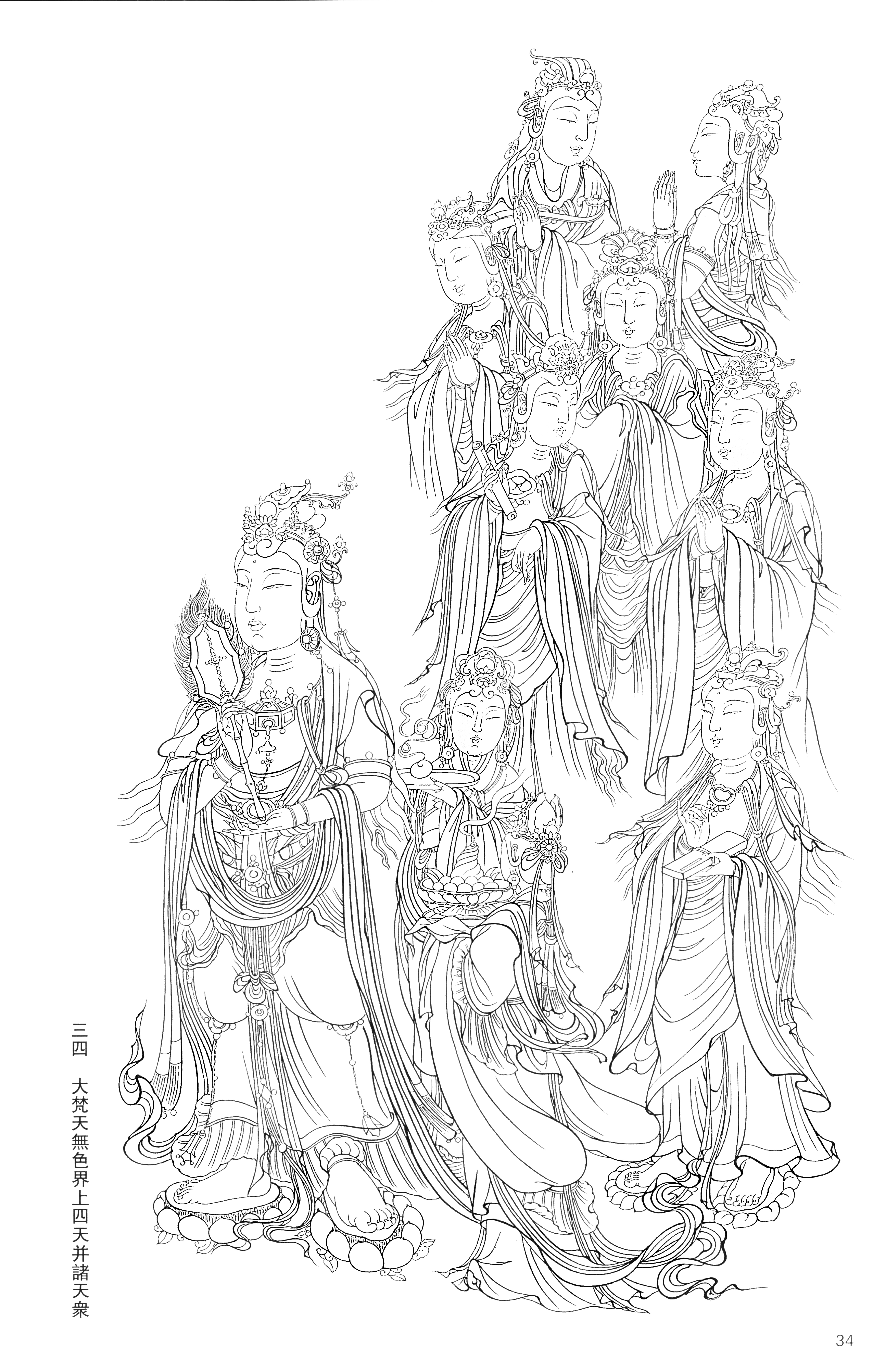 宝宁寺水陆画线稿_34.大梵天无色界上四天并诸天众_4296x6751_meet.fo