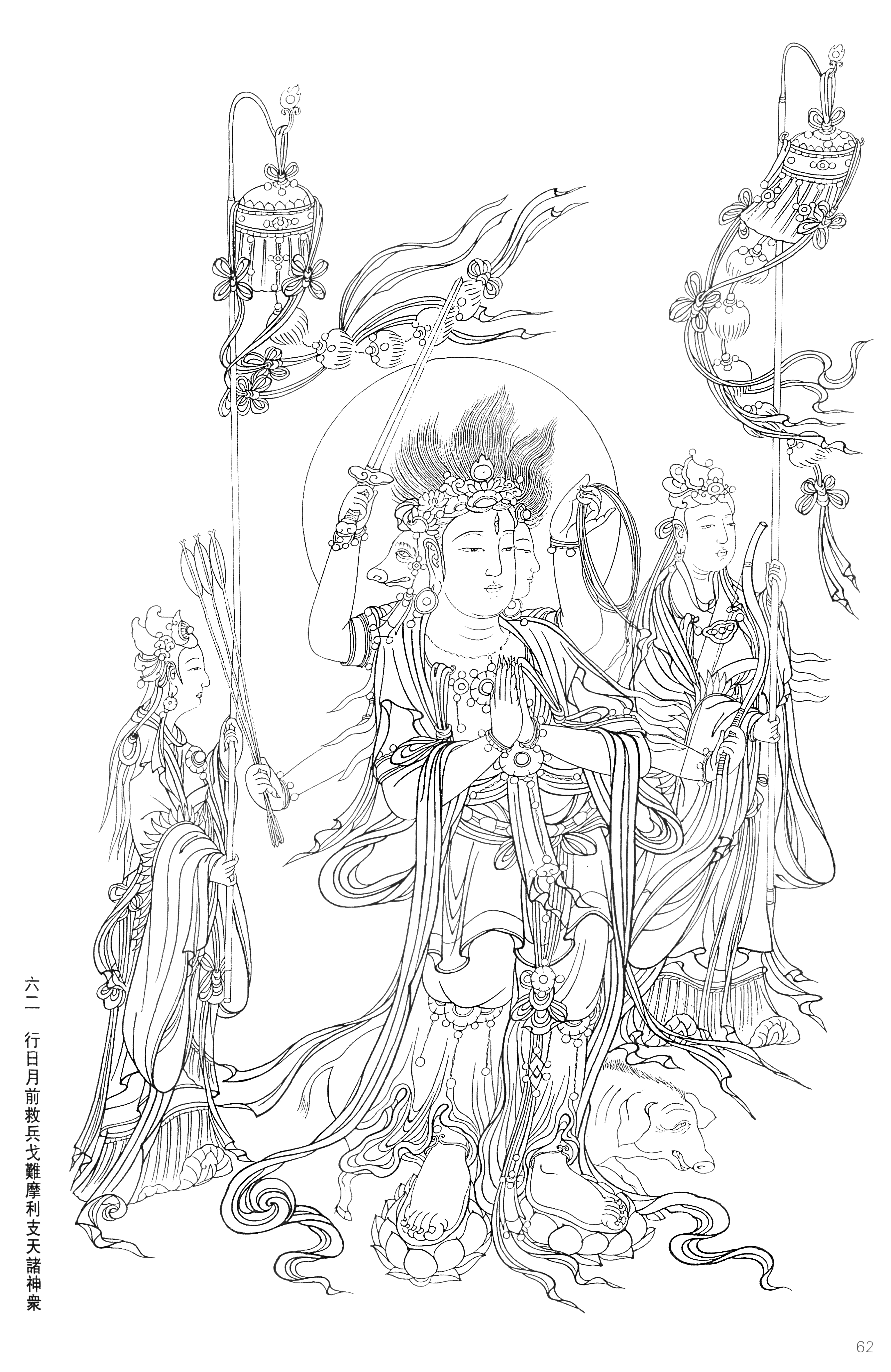 宝宁寺水陆画线稿_62.行日月前救兵戈难摩利支天诸神众_4344x6691_meet.fo